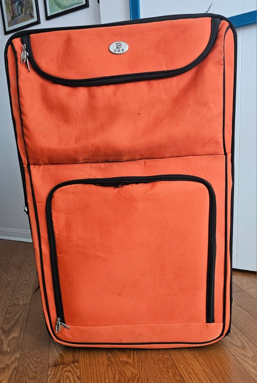 ๐ Selling a rolling suitcase that's ready for your next adventure! It's a combination of black and orange, making it easy to spot on the luggage carousel. It has a retractable handle and smooth-rolling wheels, so you can glide through the airport with ease. There are some signs of wear, but it's still in good working condition and ready to go!