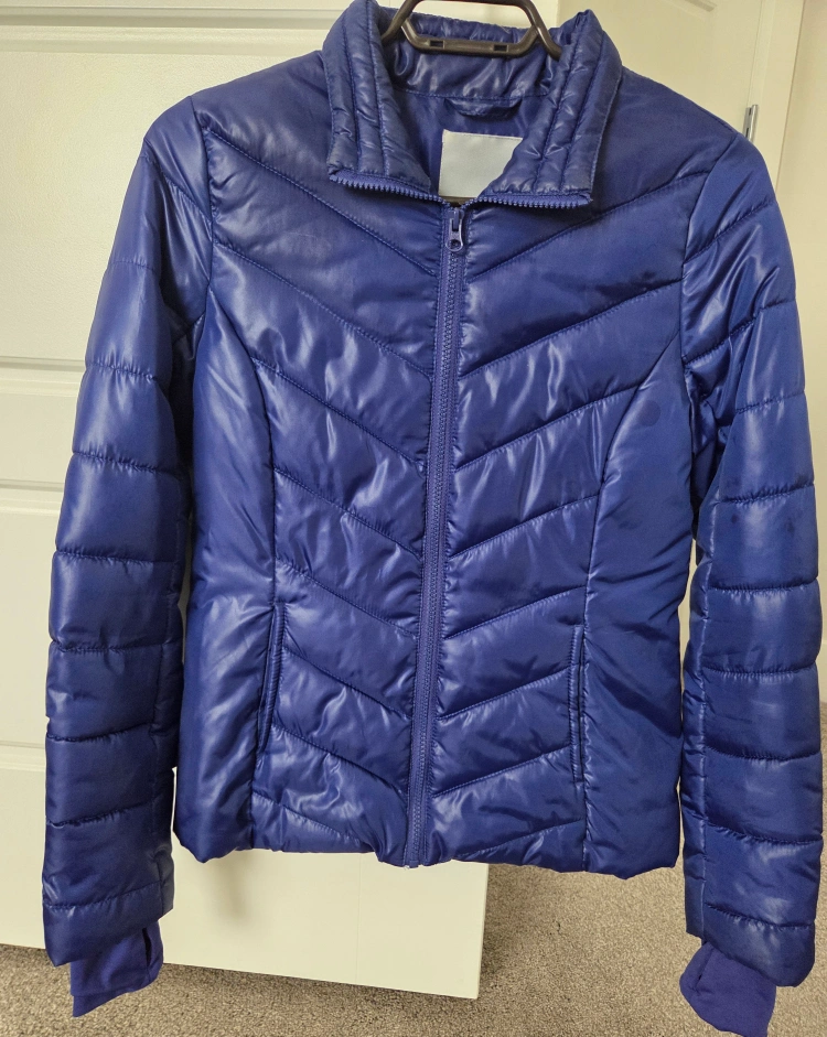 A Live Love Dream puffer jacket in size XS. It features a quilted design and made of 100% polyester for the shell, lining, and filling.