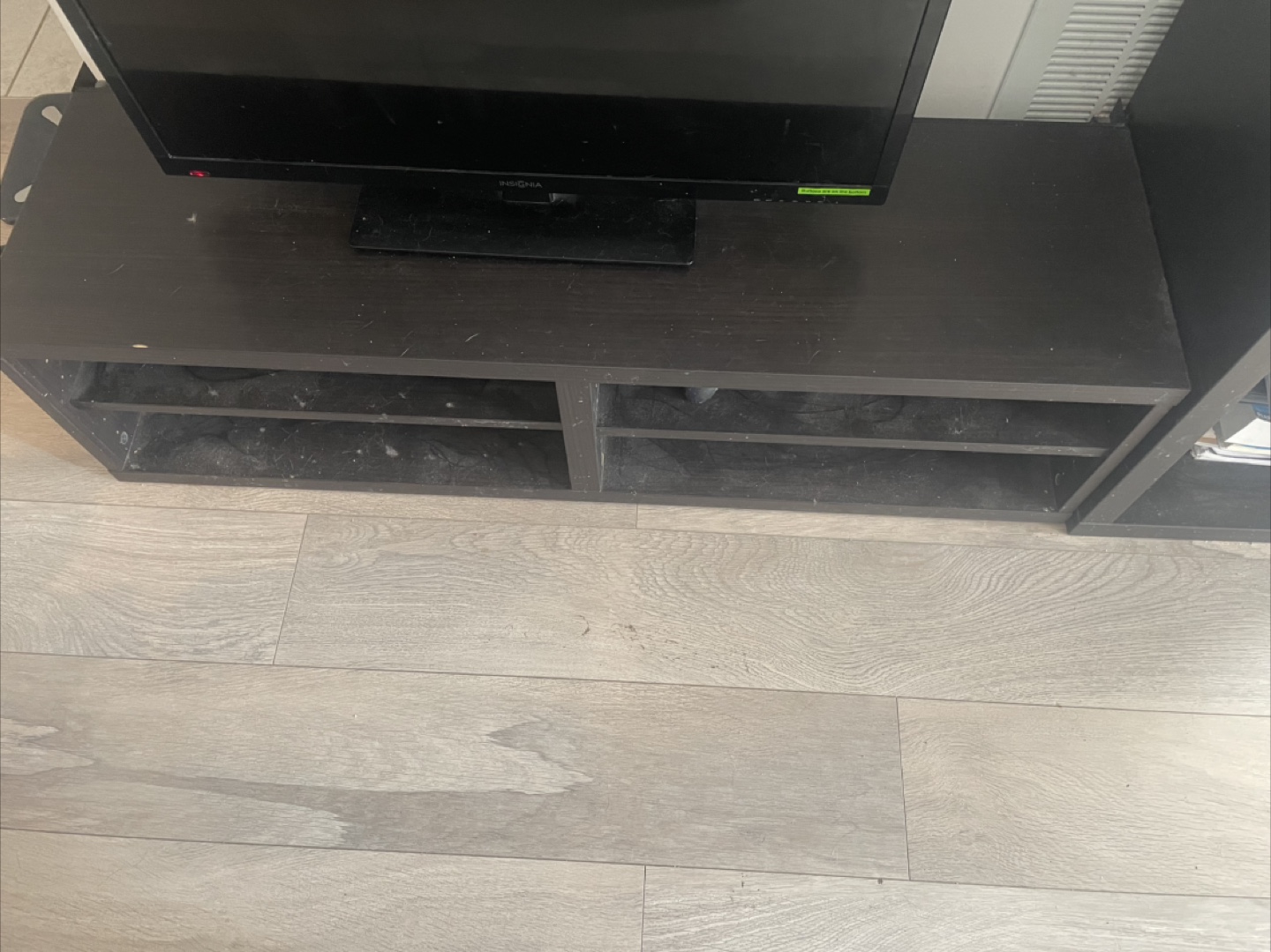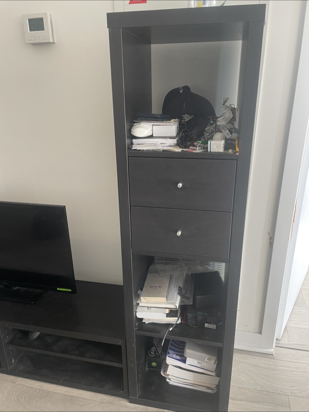 Selling a dark brown TV stand and shelf unit. It's perfect for organizing your entertainment area and displaying your favourite items. The shelf unit has drawers for extra storage
