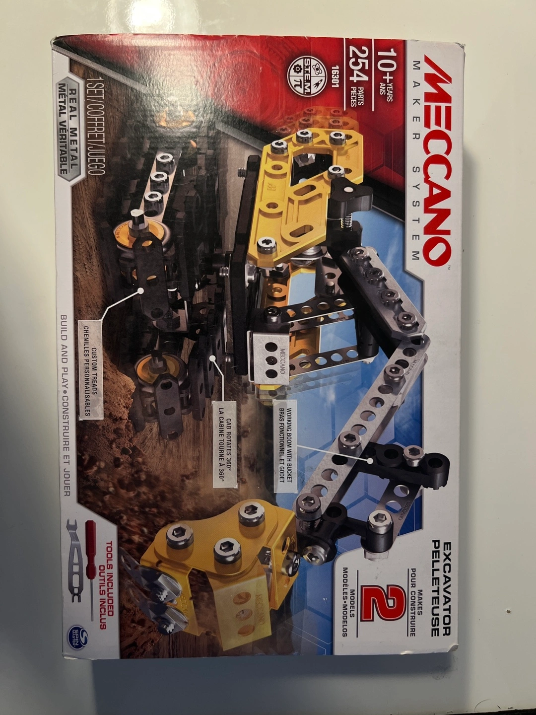 I'm selling a Meccano Excavator Pelletuse Maker System! It's a fun build and play set with real metal parts. This set is for ages 10+ and includes 254 parts.