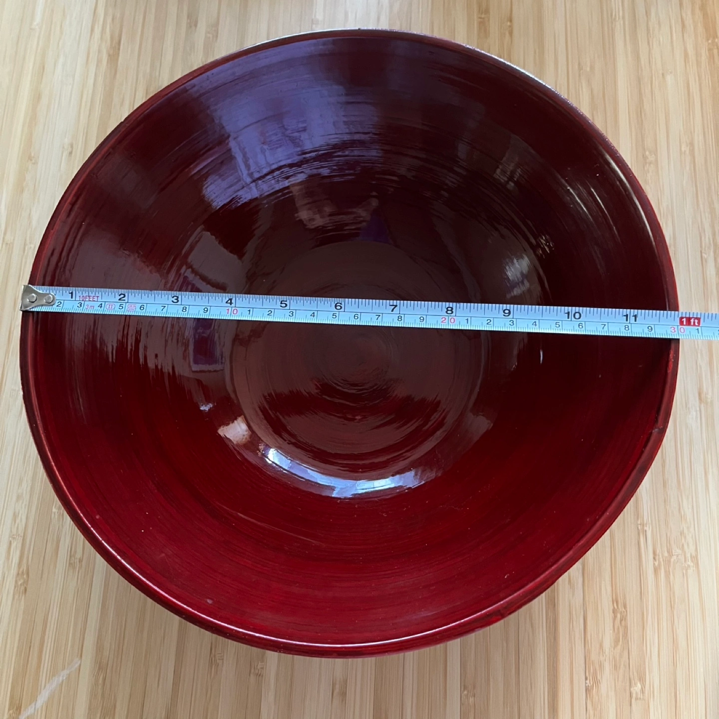 This is a food safe bowl that is approximately 11.8 inches in diameter and 4 inches tall. The bowl is a dark red color and the care instructions say to hand wash with a damp cloth and to not soak in water. Itās excellent condition and was never used as I couldnāt get it to match my decor but I loved how it looked. For pick up in Palisades Park, NJ.
