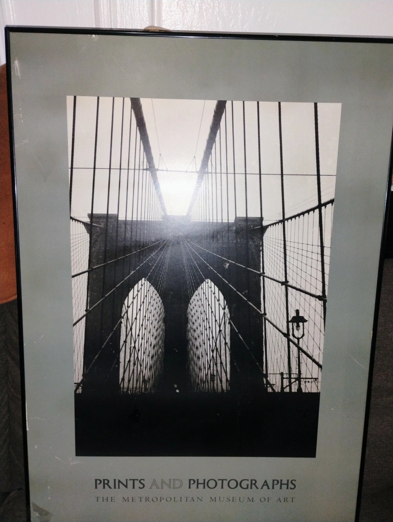 Selling a framed print from The Metropolitan Museum of Art's Prints and Photographs collection. (24 W x 34 H) It features a black and white image of a bridge. The frame has some signs of wear.