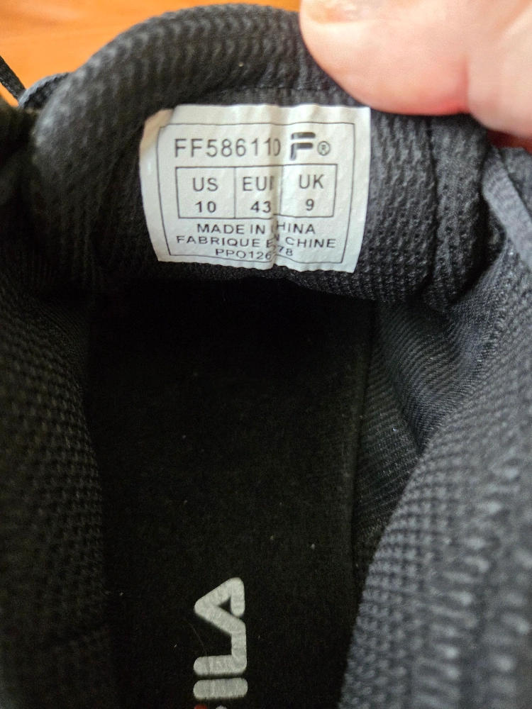 Selling a pair of Fila sneakers in black and white. They are in great condition and ready for a new home! These would be great for everyday wear or light athletic activities. Size 10 Mint Condition