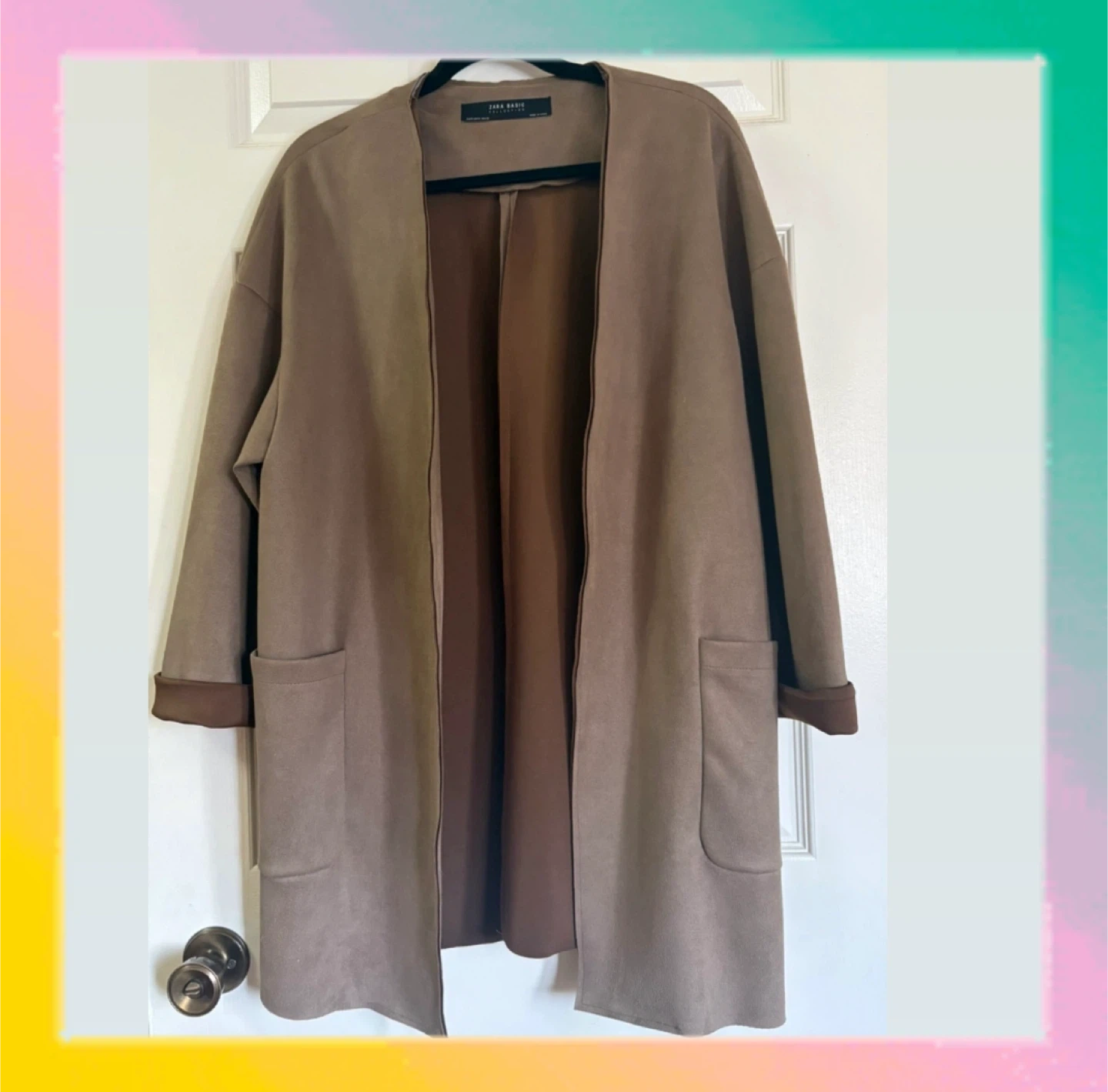 Zara Basic Mocha Faux Suede Over Coat - Sz S