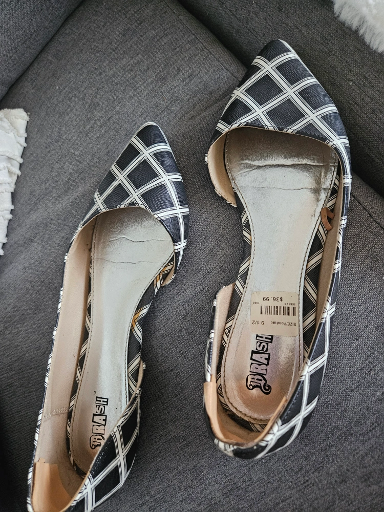 - A pair of Trash flats, size 9.5, black and white patterned