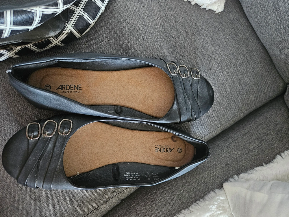 - A pair of Ardene flats, size 10, black with a bow