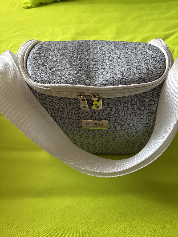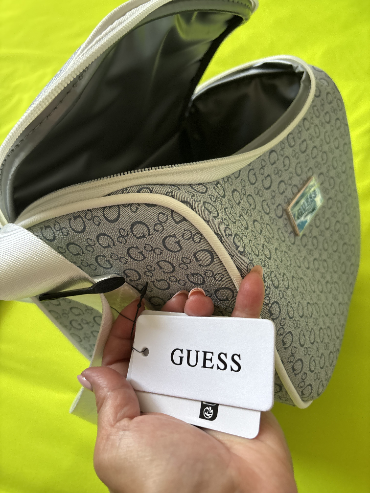 Check out this cute GUESS crossbody bag! It features a stylish all-over GUESS logo pattern and a comfortable crossbody strap. Perfect for carrying your essentials in style!