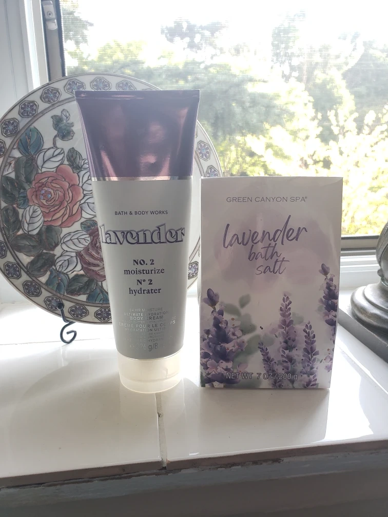 I'm selling a Bath & Body Works Lavender Ultimate Hydration Body Cream along with Green Canyon Spa Lavender Bath Salt.