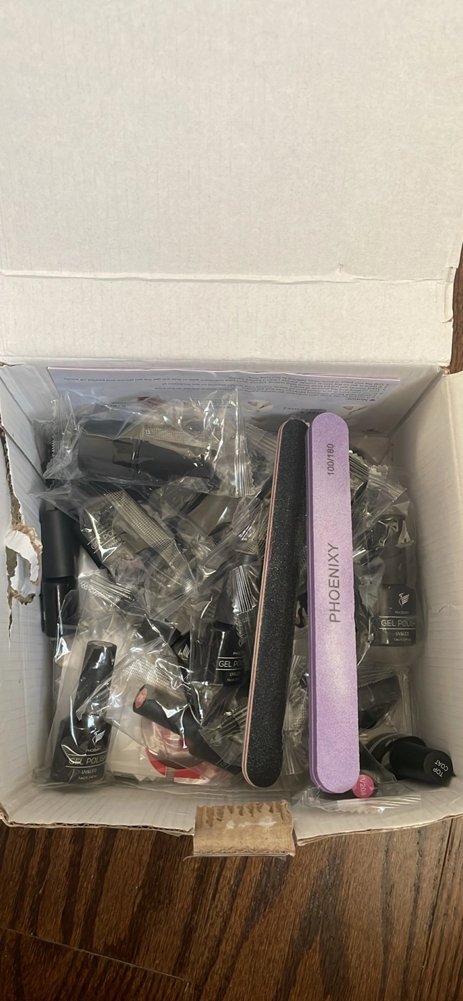 552I'm selling a new Phoenixxy Manicure Gel Polish Kit! It comes with everything you need for a salon-quality manicure at home. The kit includes gel polishes, a UV/LED lamp, and various manicure tools. The box is included too