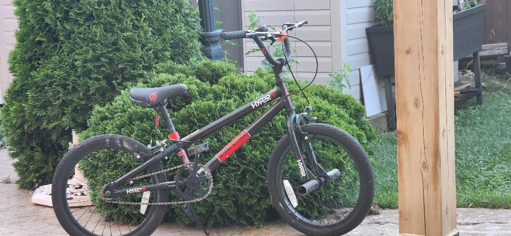 Selling a Hyper BMX bike! It's in good condition and ready for some action. Reflective light in front and back tire. Great for getting around or doing some tricks at the park