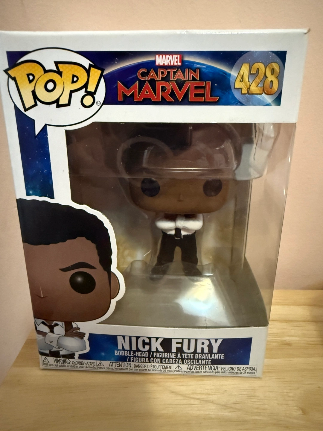 81Selling a Nick Fury bobble-head Funko Pop! from the Marvel Captain Marvel series. This is figure number 428. The box is in great shape and ready for a new home!