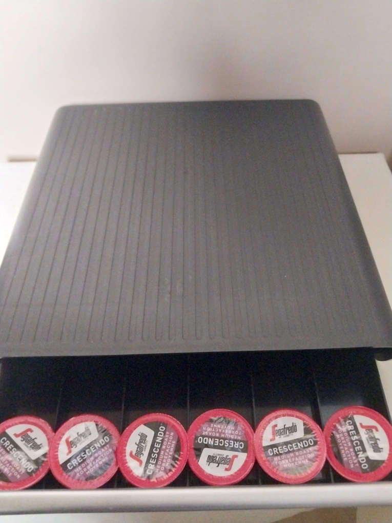 It's in great shape and ready to organize your coffee pods! The drawer holds several pods, making it easy to keep your coffee area tidy.