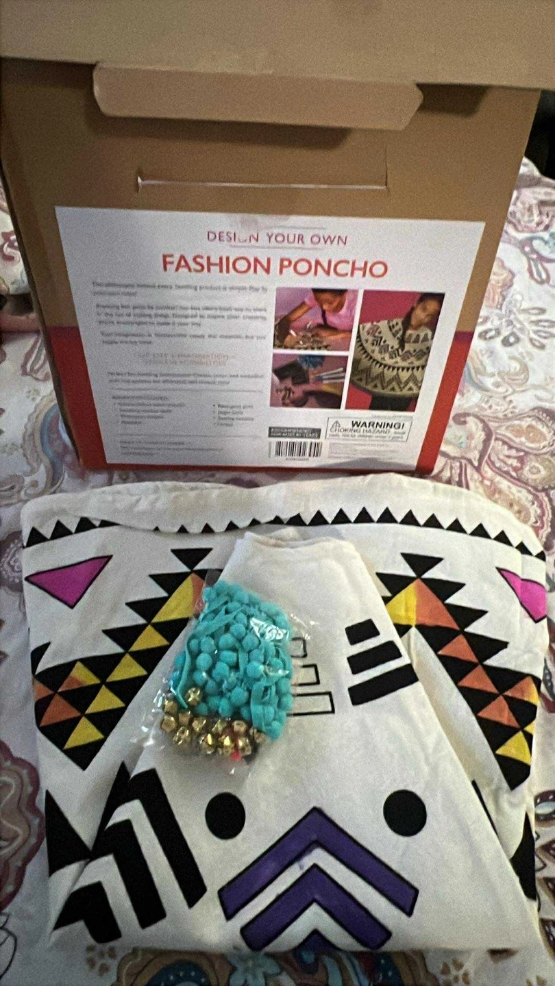 Get creative with this design your own fashion poncho kit! It comes with everything you need to create a unique and stylish poncho. The kit includes the poncho itself, pom poms, and other decorative items to personalize your creation. Perfect for a fun and crafty afternoon