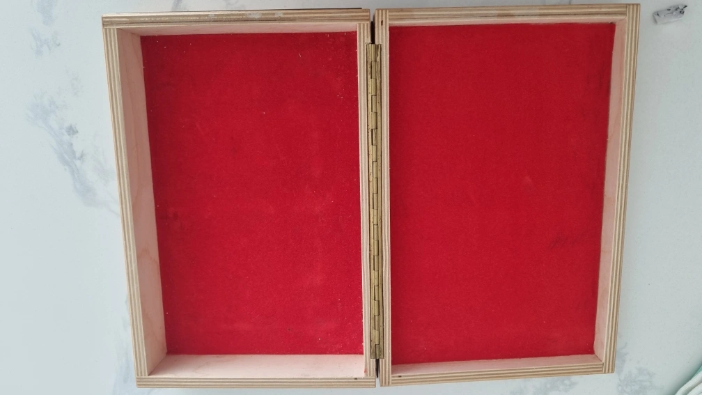 Selling a vintage souvenir box with a beautiful design. The box features a wooden exterior with an embossed image of a mother and child with flowers. Inside, it's lined with a red velvet material. A unique piece for collectors or anyone who appreciates vintage items!