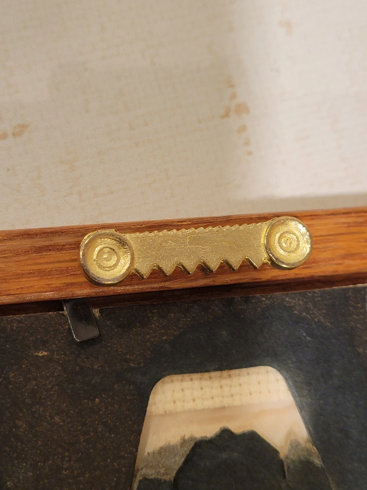 Add a touch of handmade charm to your home with this framed cross-stitch artwork! This piece features a quaint birdhouse design, complete with a nest, meticulously stitched with care. It's a unique and cozy addition to any room, bringing a bit of rustic warmth. The artwork is in used condition, showing its vintage appeal.
