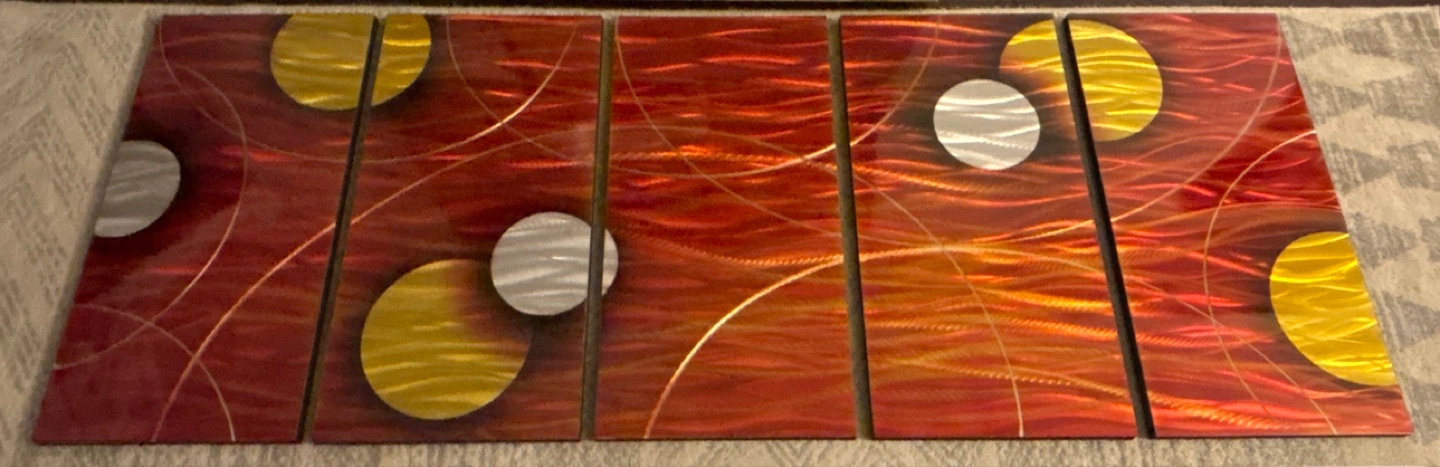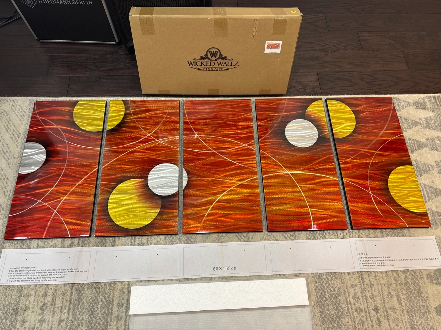 Spice up your home with this Wicked Wallz Fine Art metal wall decor! It's a 5-panel piece with a unique design, measuring 60x150cm. Comes with the original box and installation instructions, so it's ready to hang and enjoy