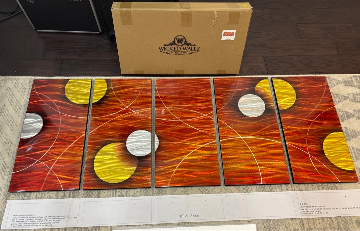 Spice up your home with this Wicked Wallz Fine Art metal wall decor! It's a 5-panel piece with a unique design, measuring 60x150cm. Comes with the original box and installation instructions, so it's ready to hang and enjoy
