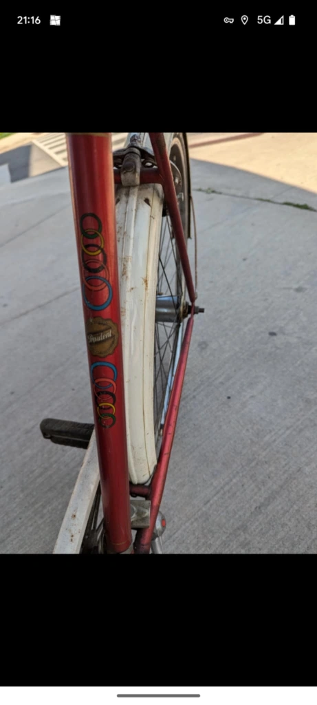 Selling a vintage President bicycle. It's red, and has white fenders. It shows some signs of wear but is still a cool ride! collectors welcome message to get information on this. FIRM WITH PRICE EVERYTHING WORKS NO ISSUES