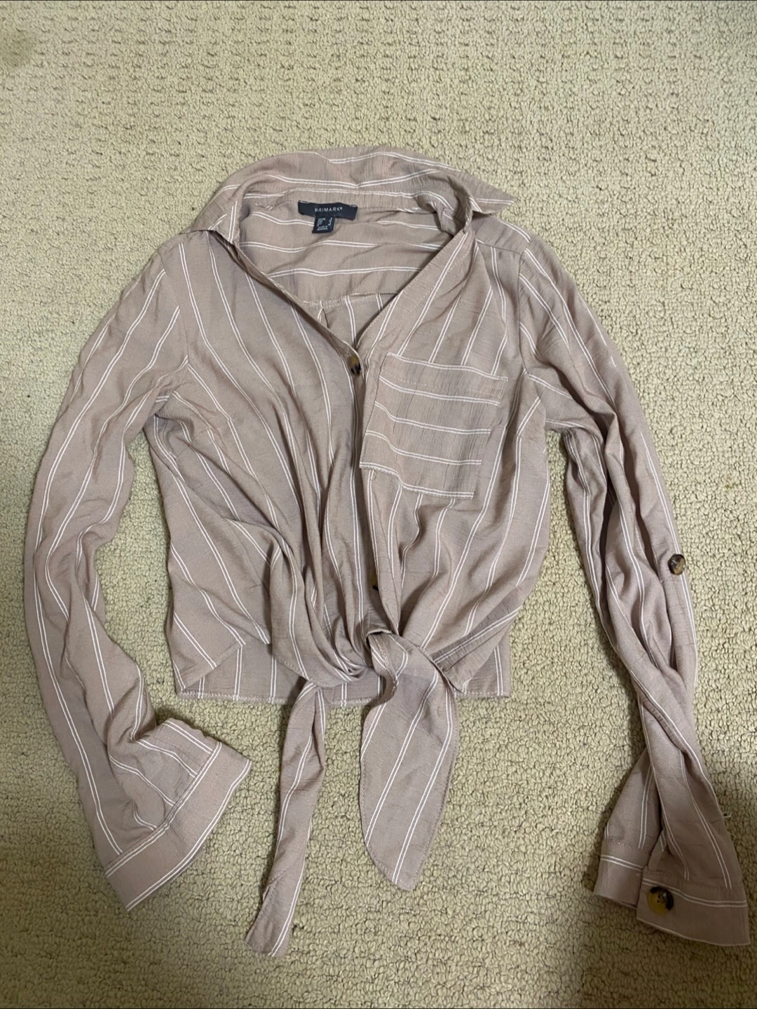 174Selling a cute Primark blouse with a striped pattern! It's a size small and made in Romania. Perfect for a casual look!
