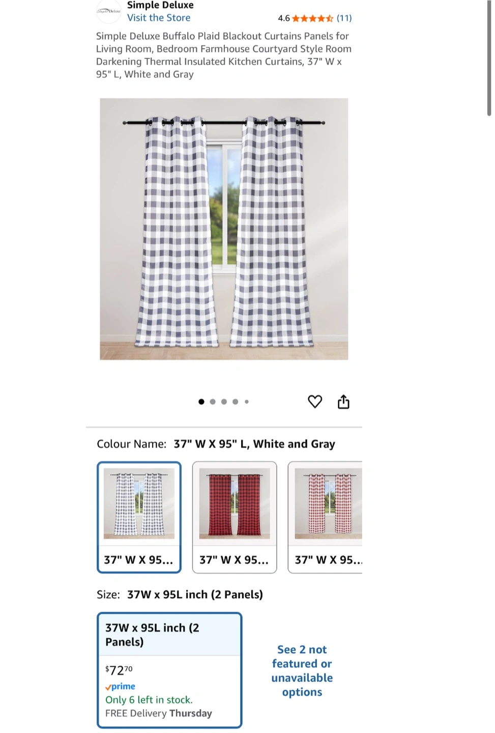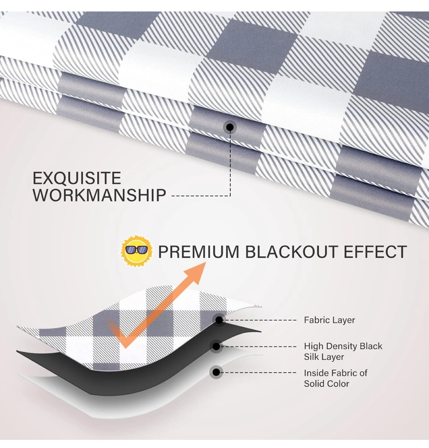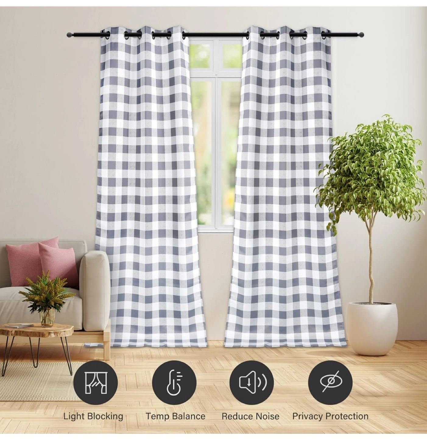 These Simple Deluxe blackout curtains are perfect for any room! They feature a classic buffalo plaid pattern in white and gray. - Size: 37" W x 95" L (2 panels) - Light Blocking - Temp Balance - Reduce Noise - Privacy Protection Originally bought for $72.70 Cash only and pickup near Londonderry mall