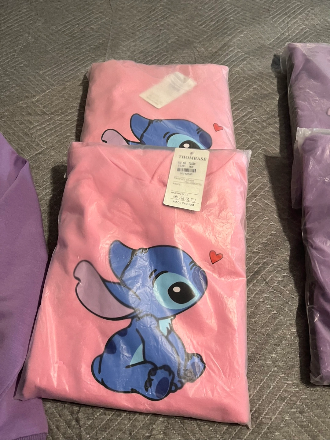 This adorable THOMBASE hoodie and pants set features a cute Stitch design, perfect for your little one. Brand new and ready for a fun day out or cozy evenings in! * Brand: THOMBASE * Design: Stitch * Includes: Hoodie and pants * Condition: New with tags Looking for a magical outfit? This Stitch set is just the thing! And remember, if the ad's still up, it's still available! Have available sizes: -size 170 (XL for kids) purple sets (2) -size 160 (L for kids) pink sets (2) -size 150 (M for kids) purple (1) Cash only and pickup near Londonderry mall