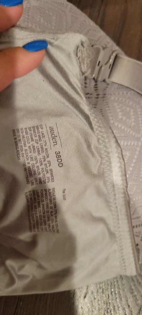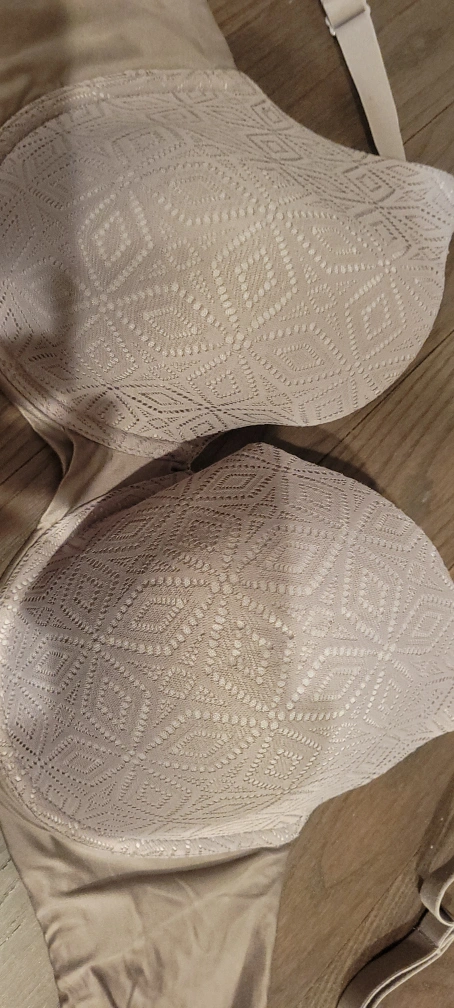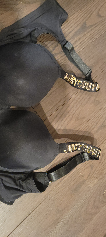Selling a couple of bras in great condition! One is a black Juicy Couture bra, size 36D, with the logo on the straps. The other is an Auden bra, size 38DD, in a light beige colour with a pretty pattern.