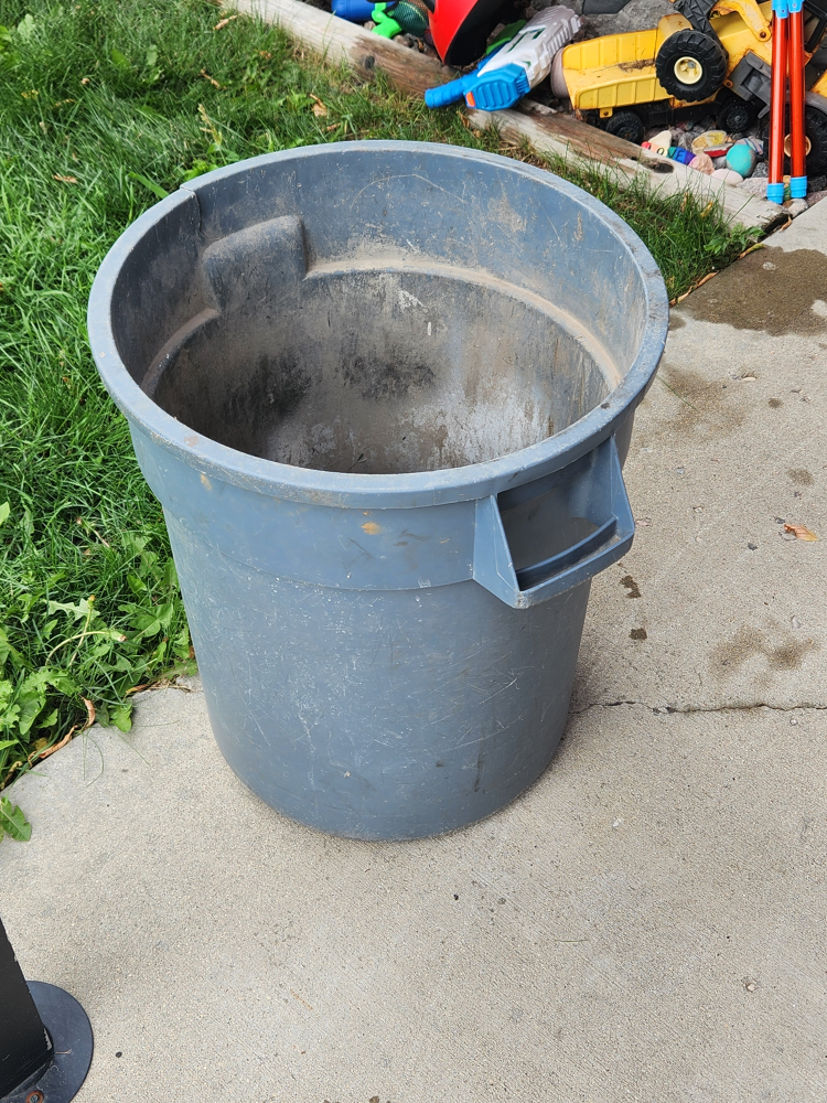 Used Blue Plastic Trash Can