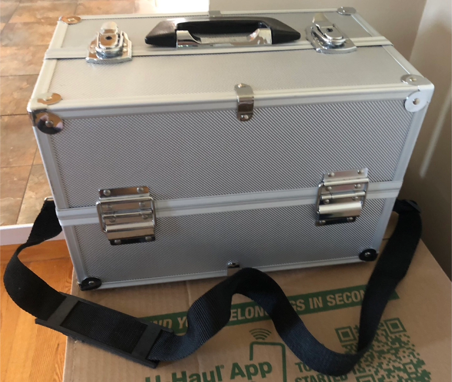 Selling a silver makeup/cosmetic organizer case. It's in great condition and perfect for storing all your beauty essentials. It comes with a shoulder strap for easy carrying