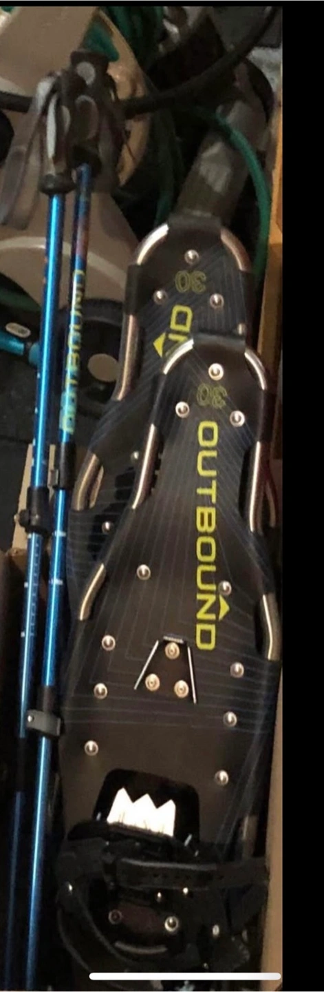 New Outbound snowshoes, perfect for winter adventures! They come with a set of blue poles, so you're all set to explore the snowy trails. Ready for their next adventure!