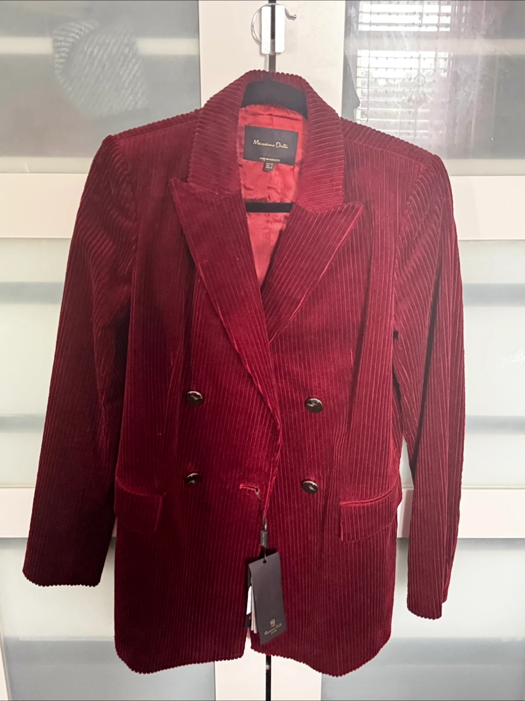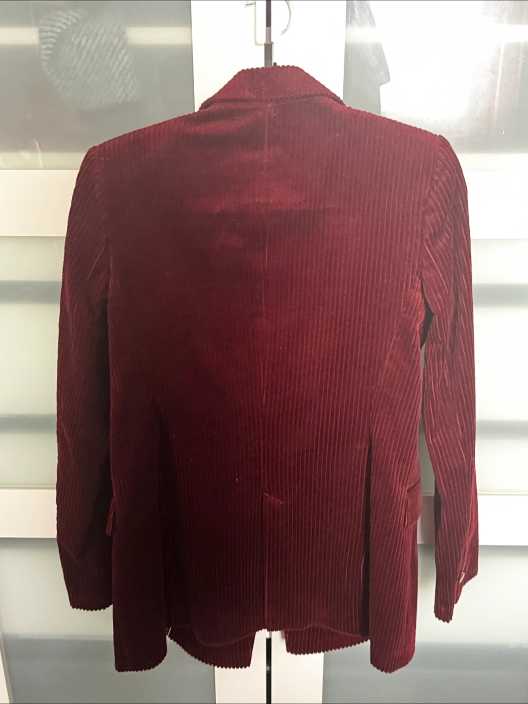 This Massimo Dutti corduroy blazer is brand new with tags! It's a beautiful burgundy colour and a European size 38 or US 6. Originally bought for $275 + tax, it's a stylish and comfortable addition to any wardrobe