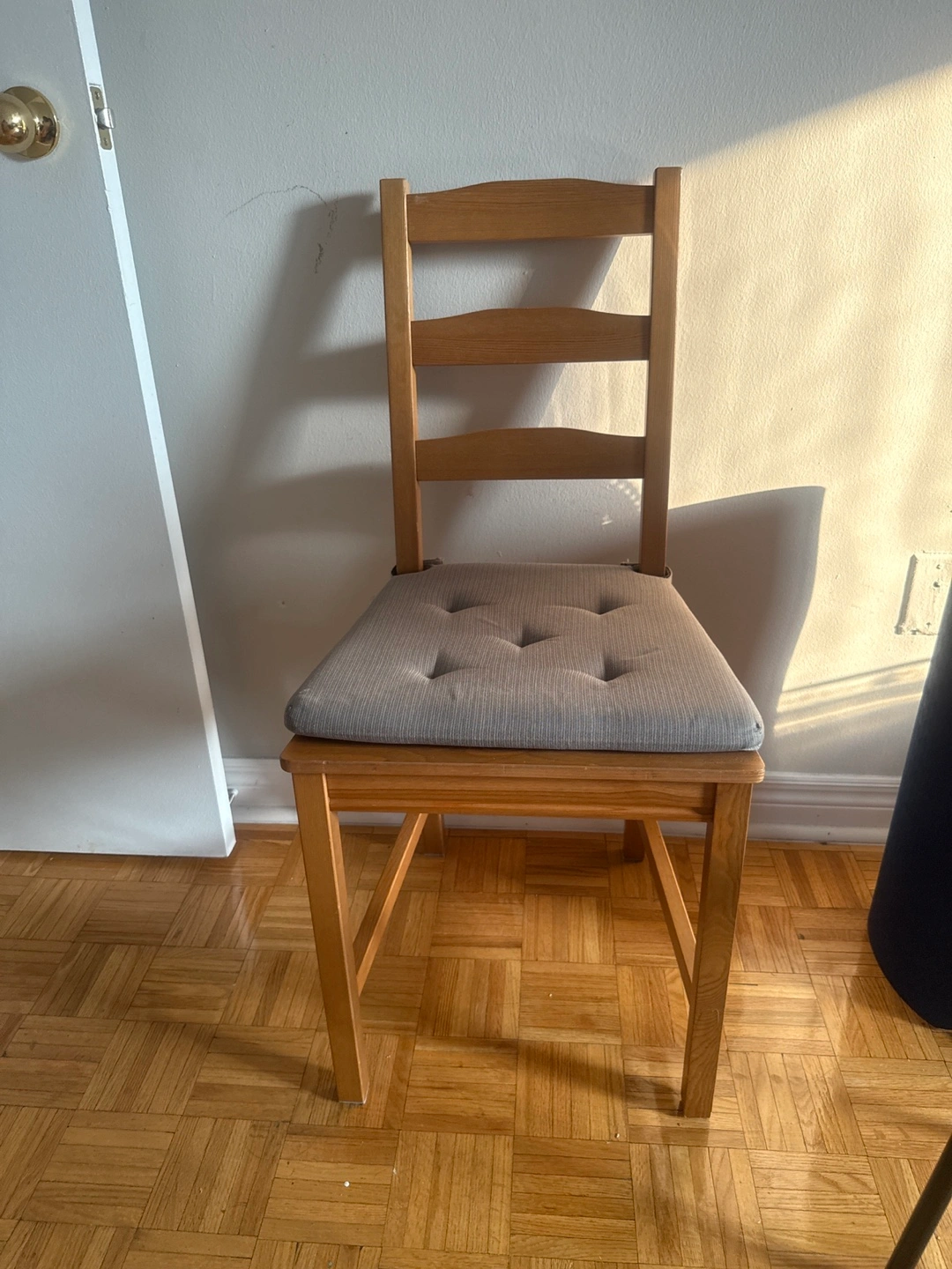 Selling a black Ikea stool and a wooden chair. They are in good condition and ready for a new home! Perfect for adding extra seating to any room Selling a variety of home furniture items. Includes a floor lamp, stool, fan, chair, and yoga mat. All in good condition and ready for a new home! 1. Chairs with cushions (2no) $15 each 2. Metal stool $15
