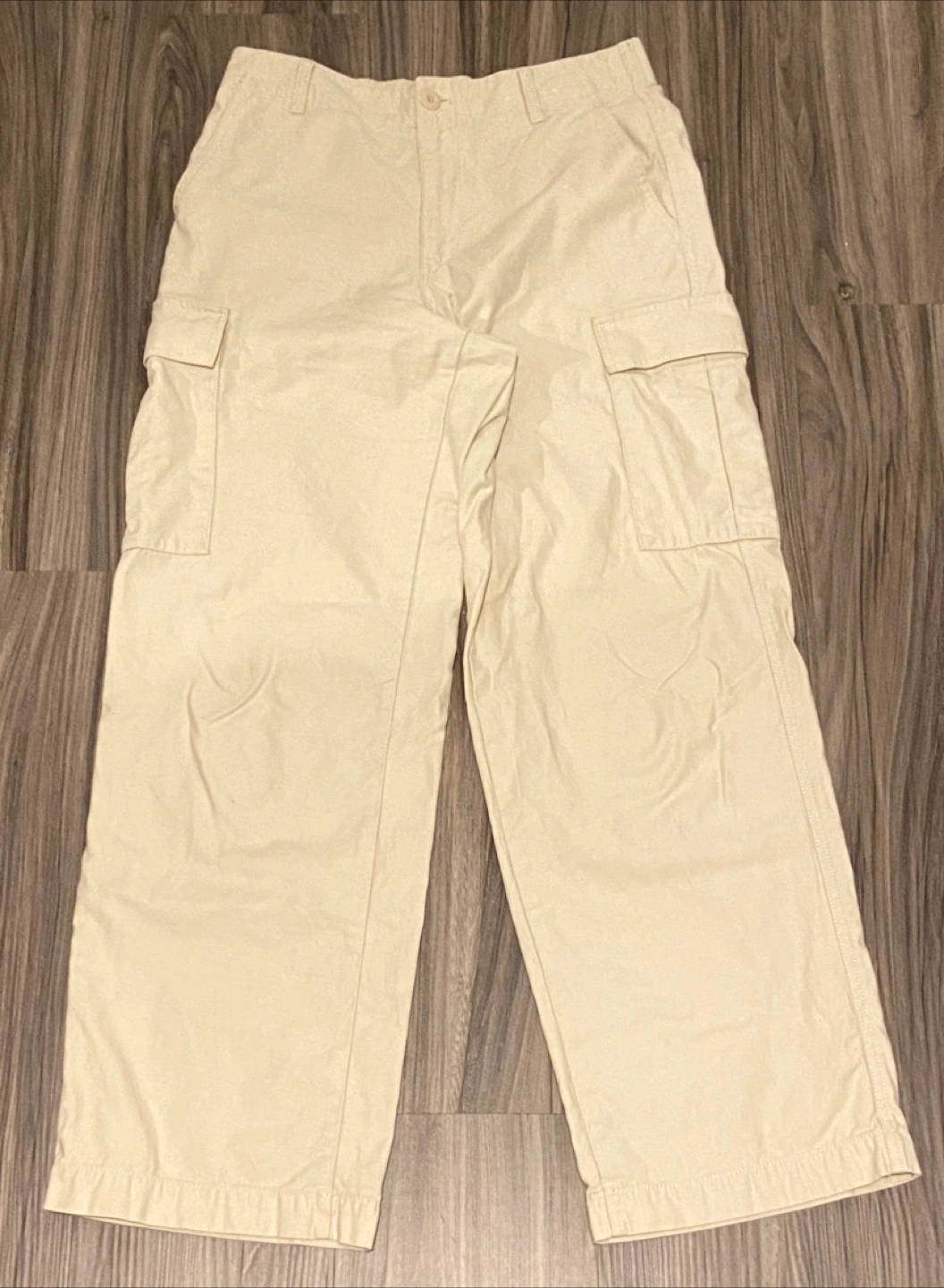 These are a pair of beige cargo pants. Perfect for casual wear or outdoor activities