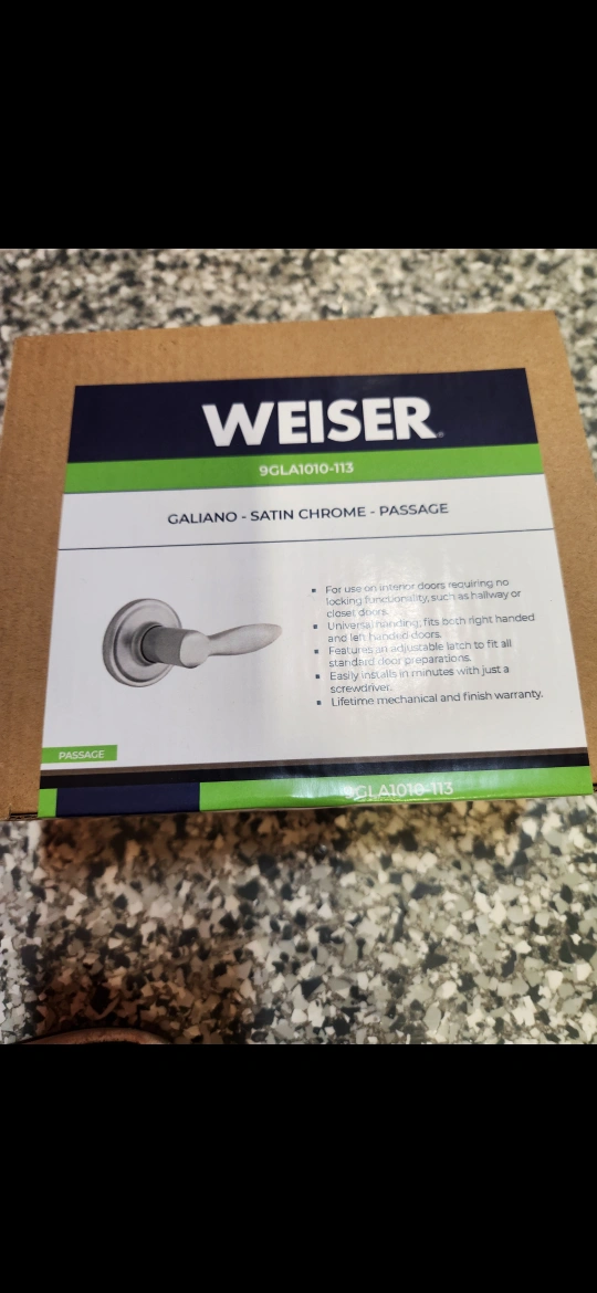 Selling a new Weiser Galiano passage door handle in satin chrome! It's designed for interior doors and is universal, fitting both right- and left-handed doors. Easy to install with just a screwdriver and comes with a lifetime mechanical and finish warranty! The box is included 3 Available @ $10 each