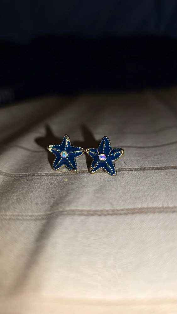 Cute starfish stud earrings in blue and gold.