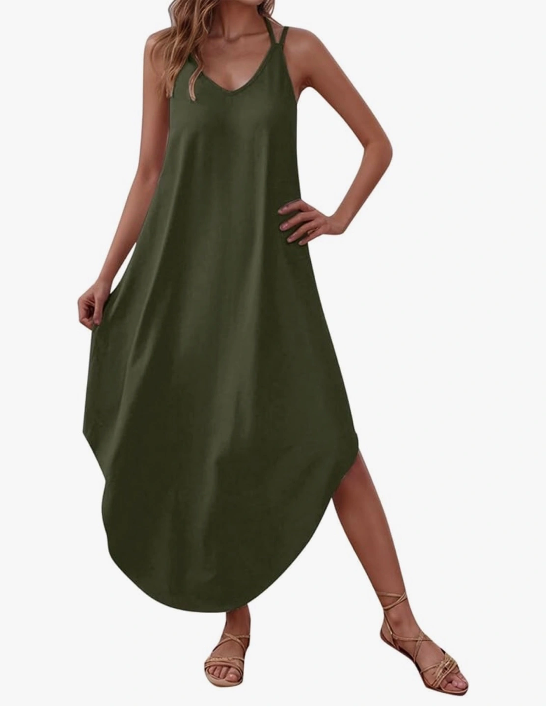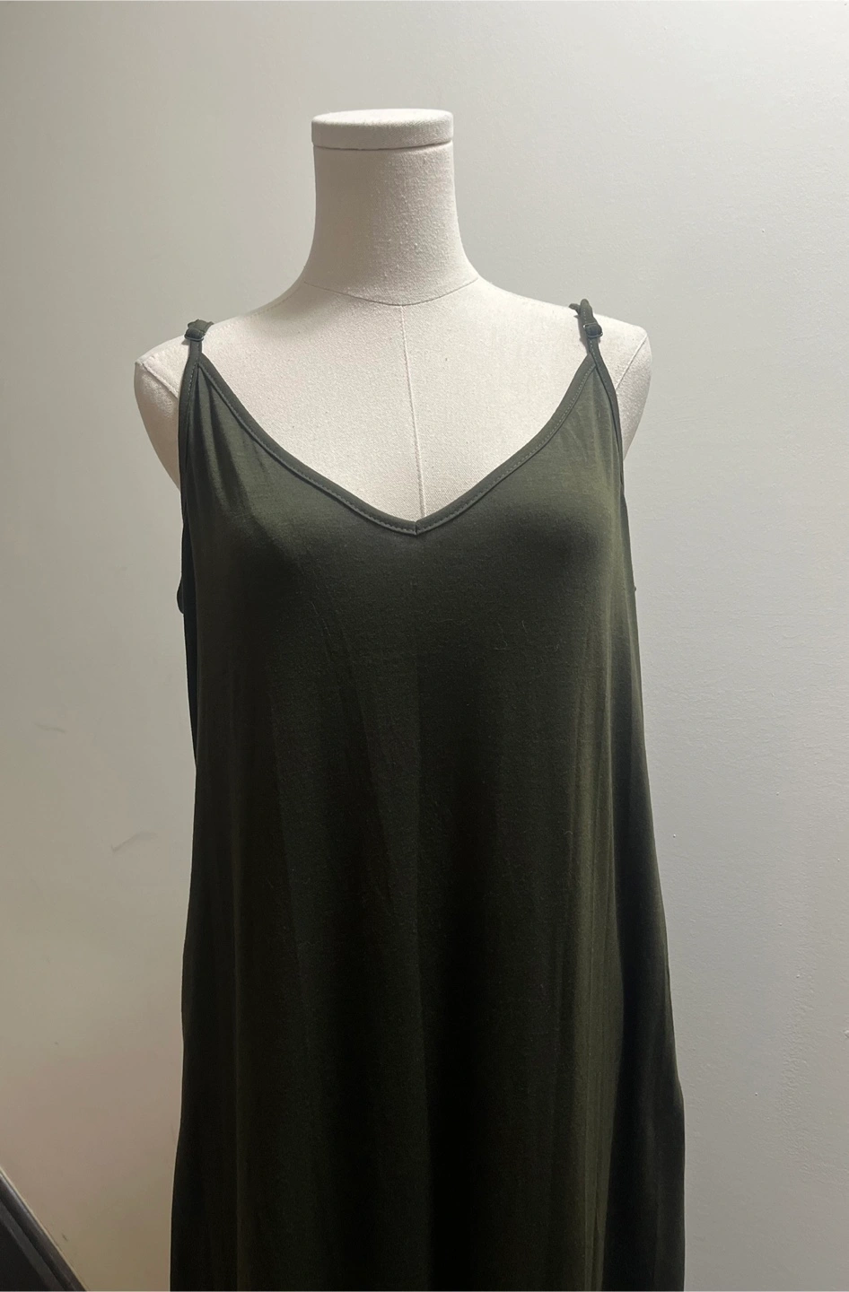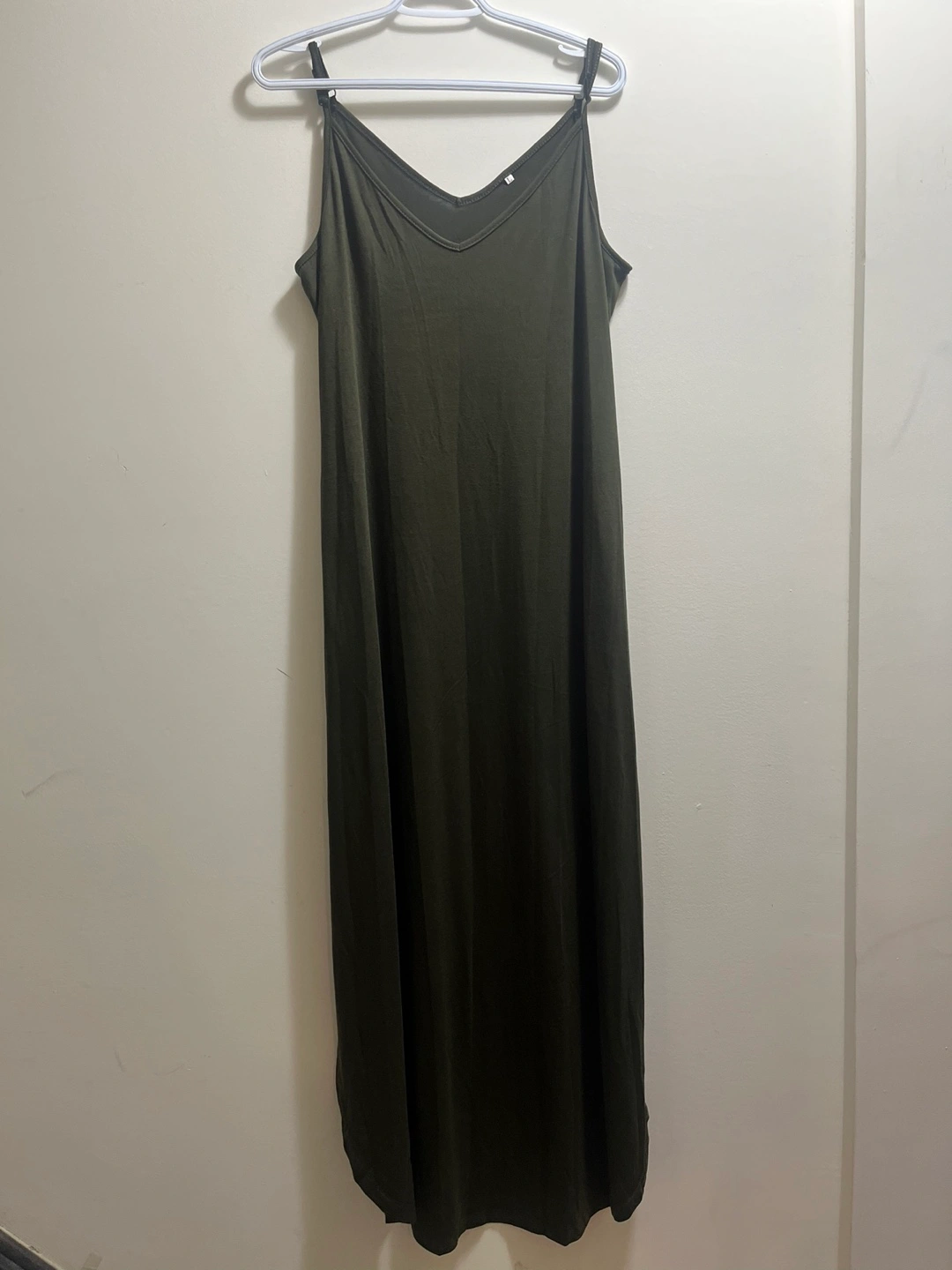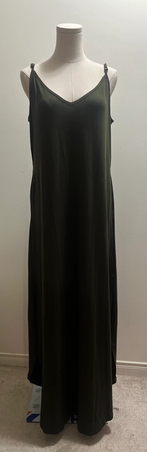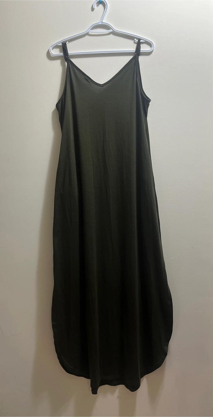 Brand new! Pickup Brampton or downtown Toronto This elegant olive green maxi dress is perfect for any occasion. Its sleek design offers both comfort and style. Jersey like material, very comfortable. Great for travel /beach wear! Has pockets as well! Approximate measurements: PTP 21” (25” with stretch) Length 58” (has adjustable shoulder straps!)