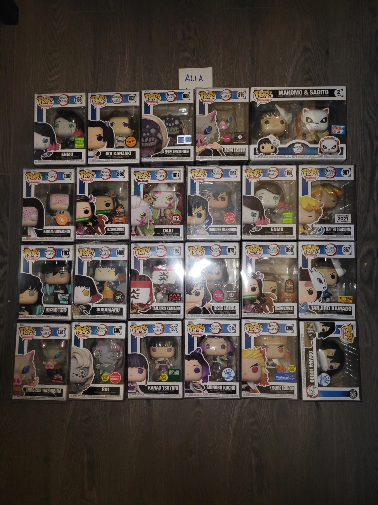 Selling a collection of Demon Slayer Funko Pops! Great for any fan of the series. Various characters available, including Tanjiro, Nezuko, and others. Perfect for collectors or as a gift!