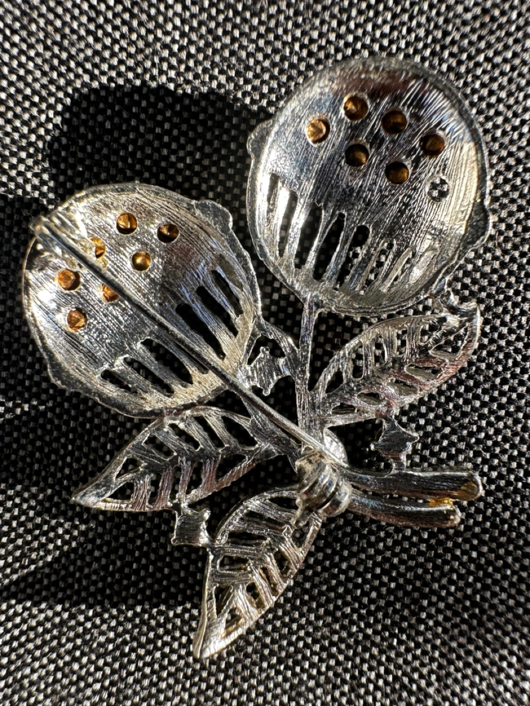 Vintage Floral Brooch with Rhinestones