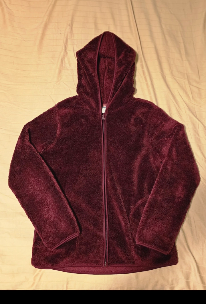 Cozy Old Navy fleece hoodie in a lovely burgundy colour! It's a size XL/TG (14) and in great condition. Perfect for staying warm on chilly days!