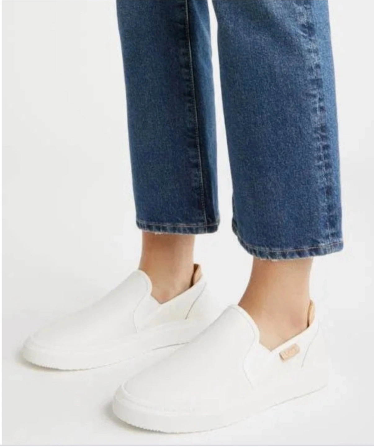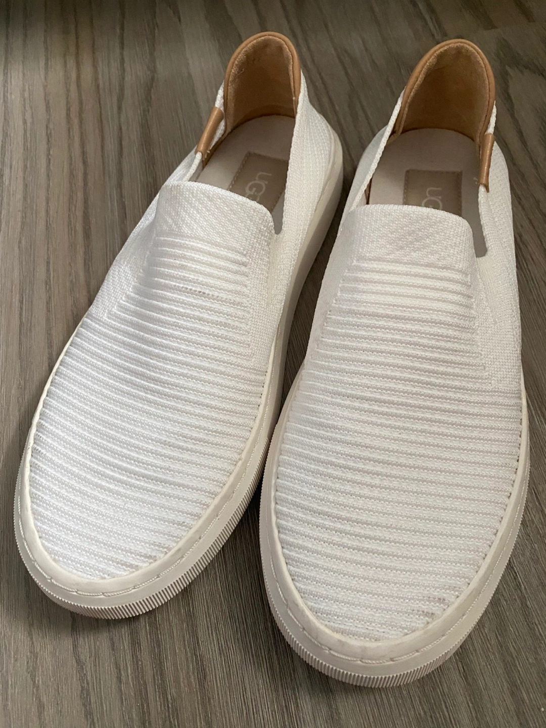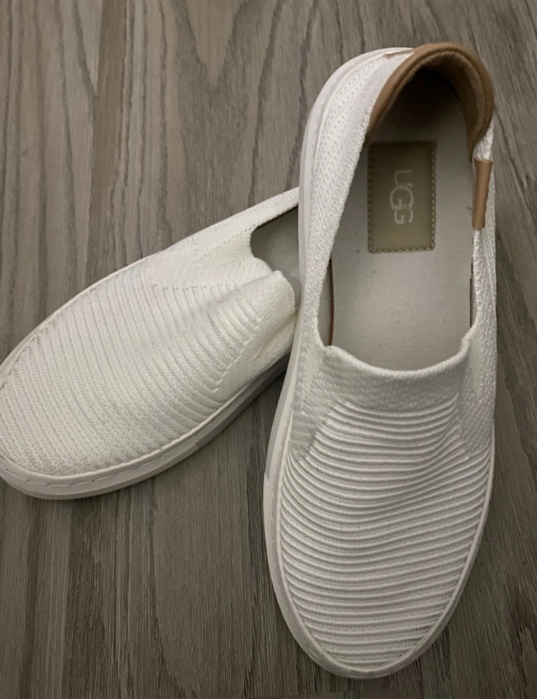 Selling a pair of UGG Women's Alameda slip-on sneakers in white. They are super comfy and perfect for everyday wear! The shoes are in excellent condition and ready for a new home. Check out the photos for a closer look
