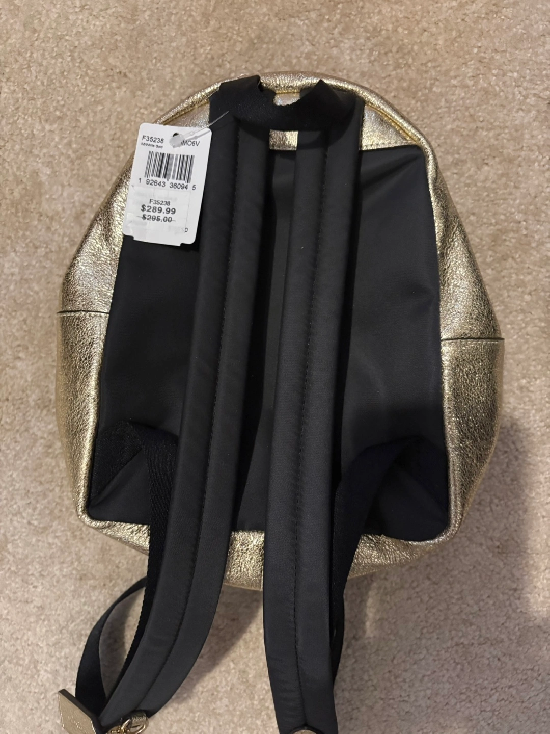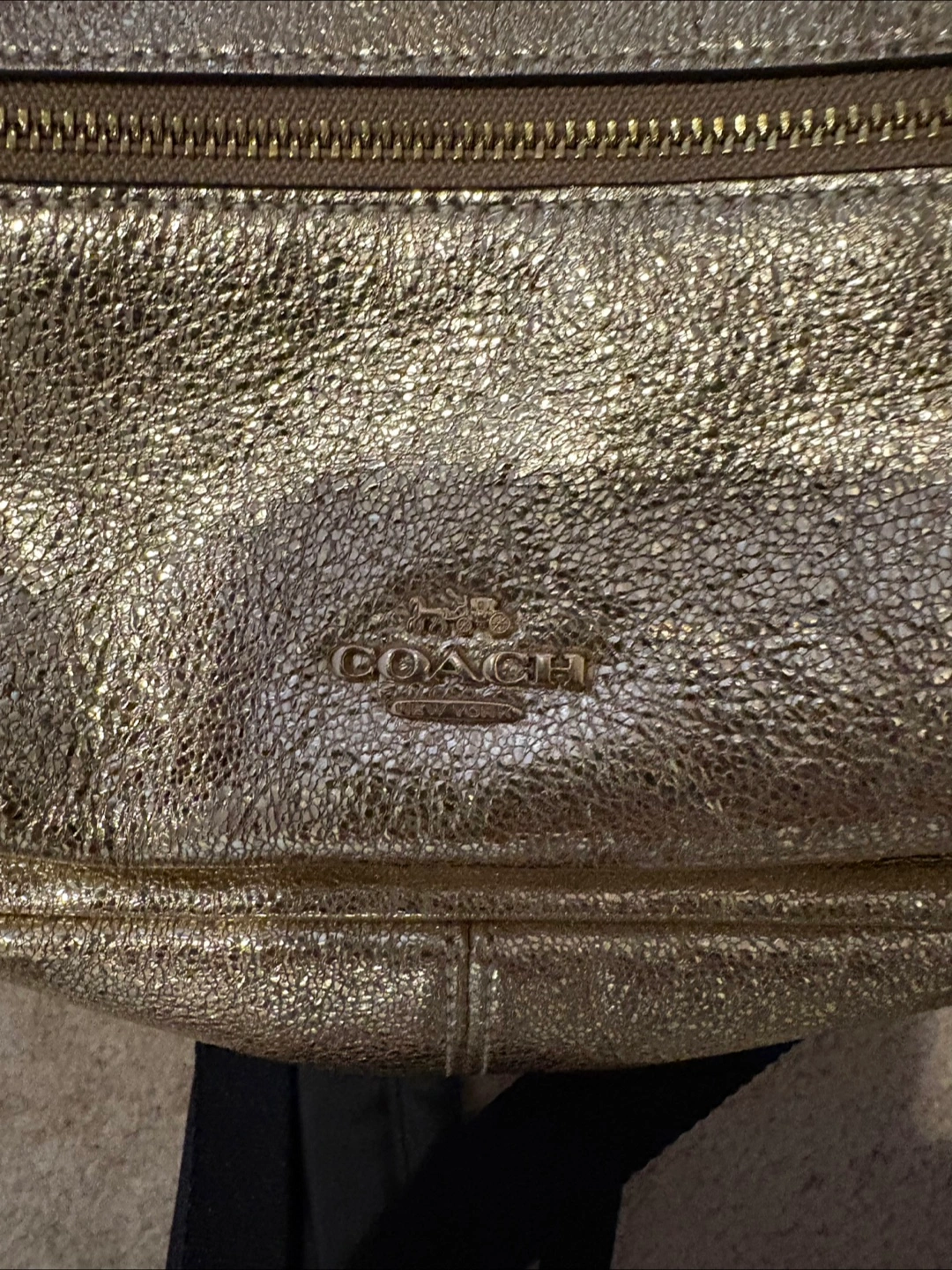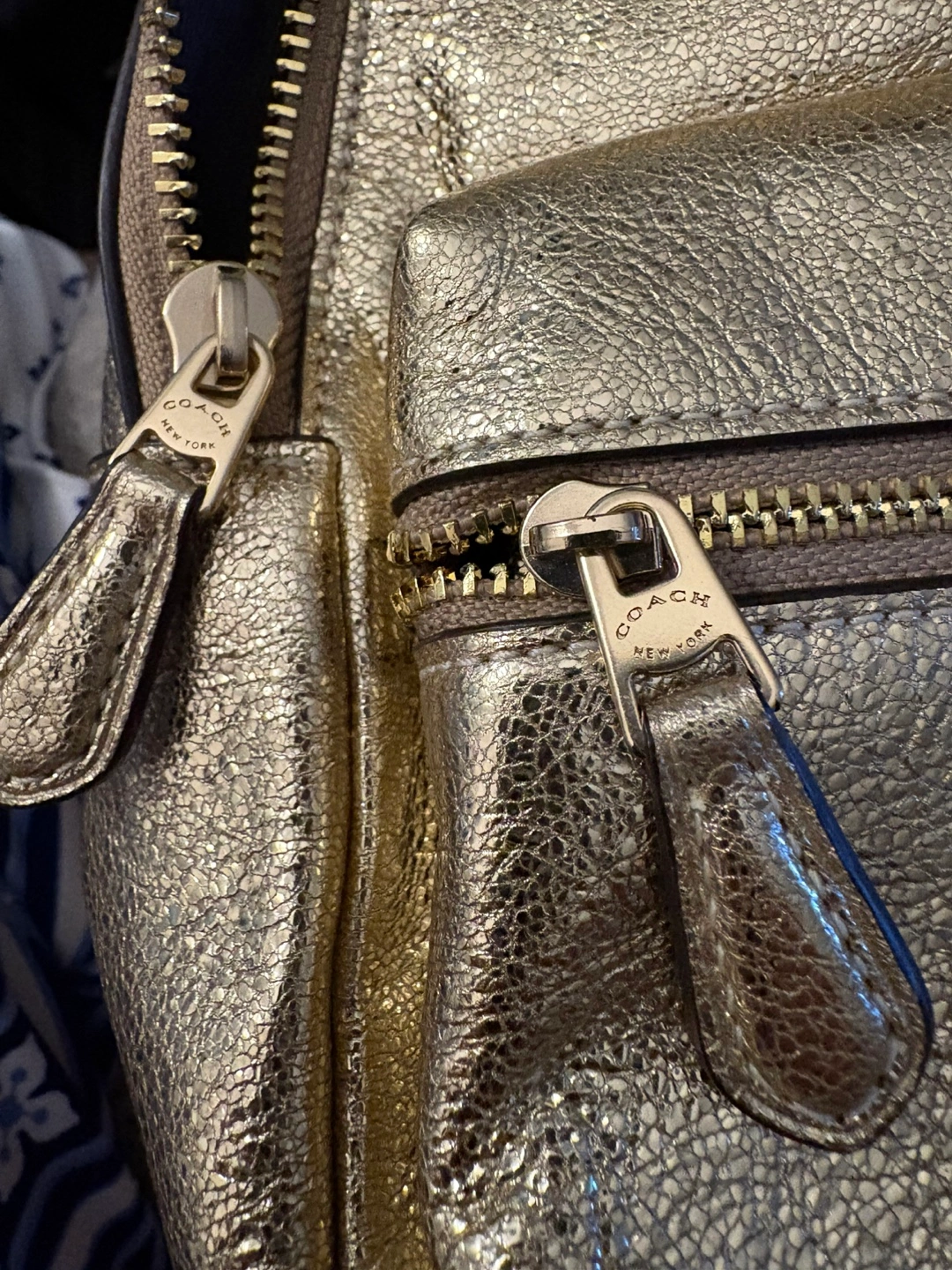 Selling a cute Coach mini backpack in a metallic gold colour. It's in great condition and perfect for carrying your essentials. The tag shows it originally retailed for $298! Pick up in Chestermere.