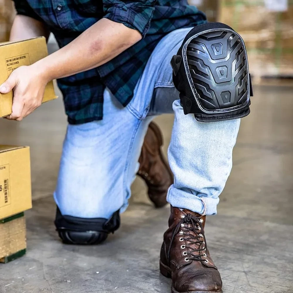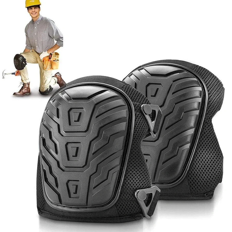 These premium knee pads feature gel and foam padding for ultra-soft comfort and protection. They have a sturdy black design with adjustable straps for a secure fit. The large pads offer enhanced stability and are perfect for various tasks requiring knee protection.