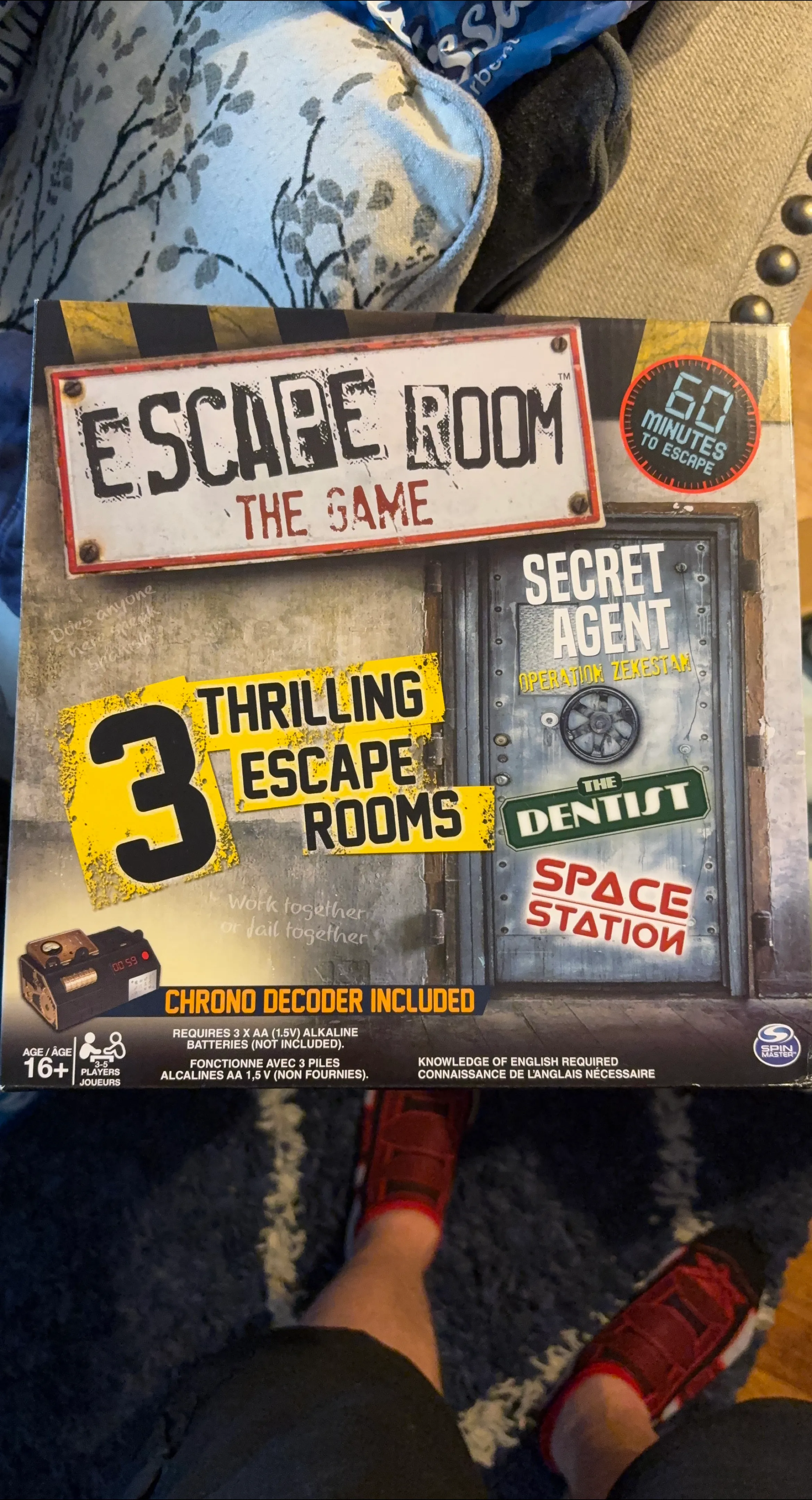 Selling the Escape Room The Game board game! It includes 3 thrilling escape rooms and a chrono decoder.