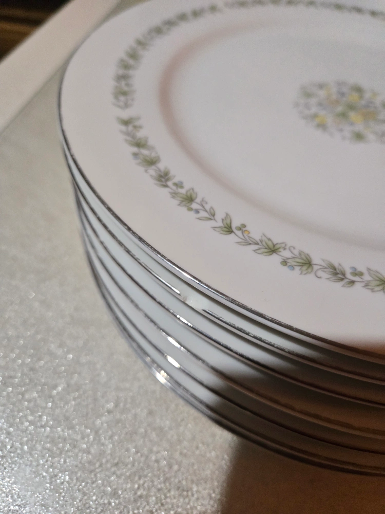 Selling a set of Towne House fine china plates, Justine pattern. These plates are in good condition and feature a delicate floral design around the rim. Perfect for adding a touch of elegance to your dining table! 7 plates .
