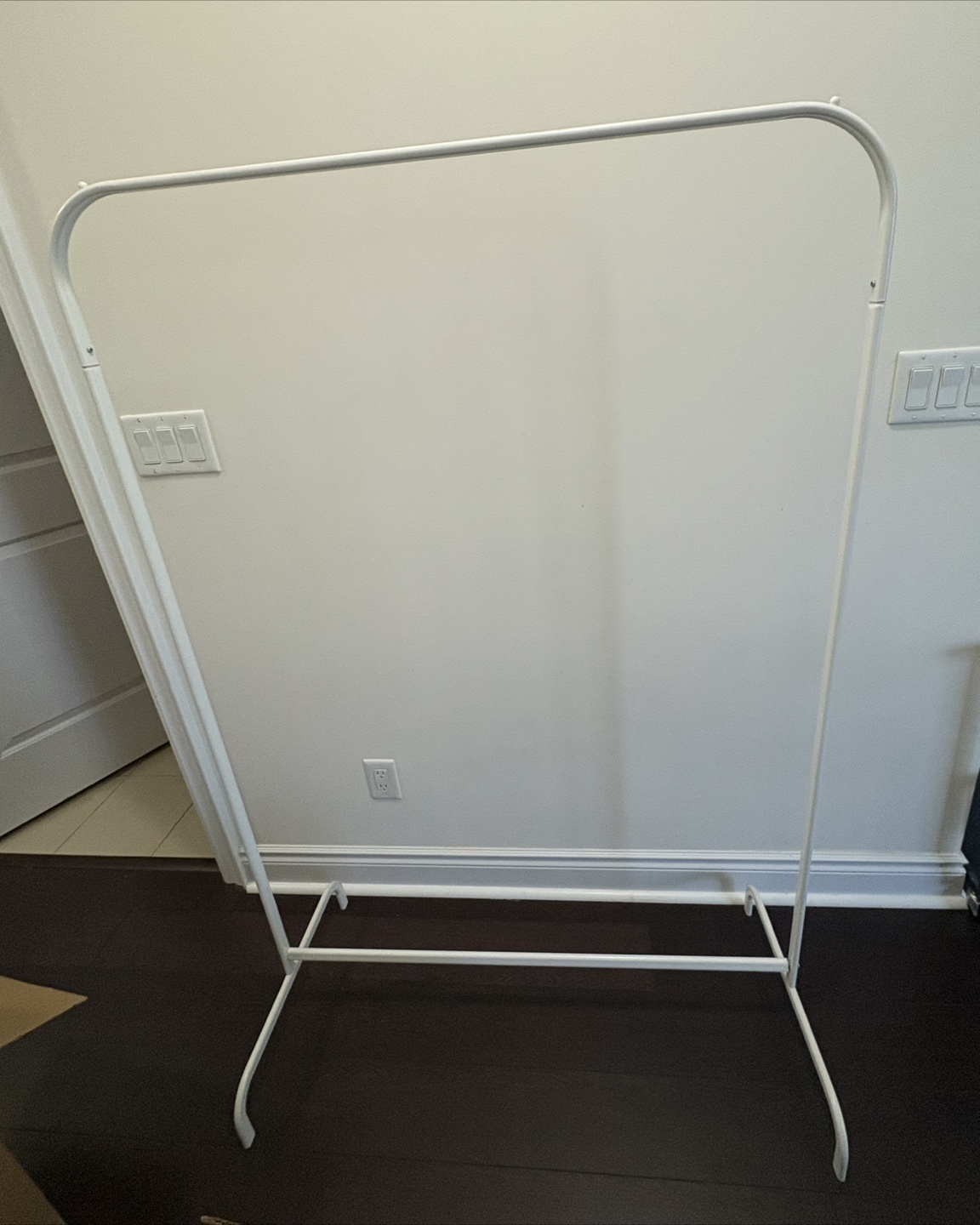 Selling a simple white metal clothes rack! It's in great shape and ready to help organize your wardrobe. Perfect for extra hanging space.