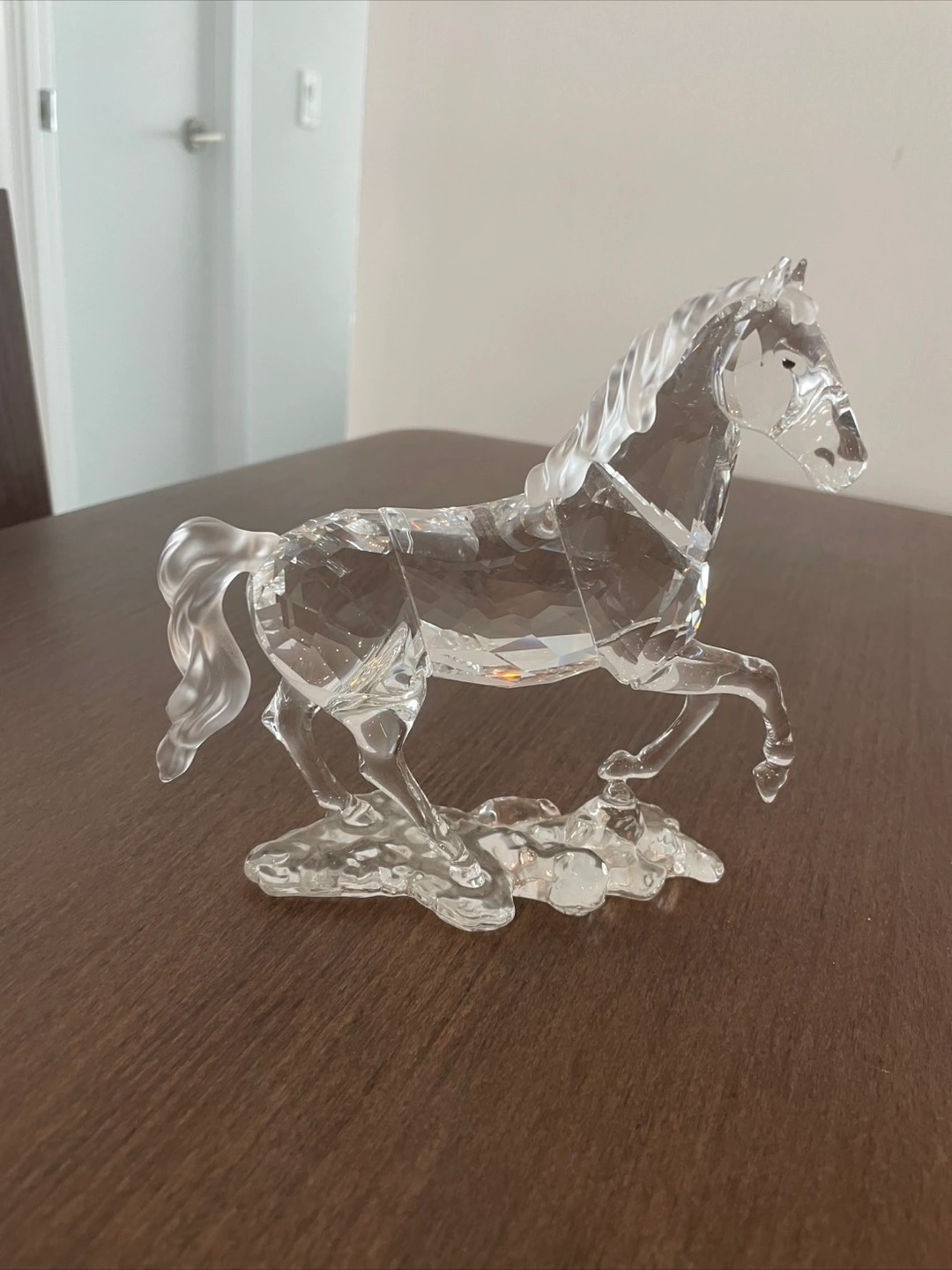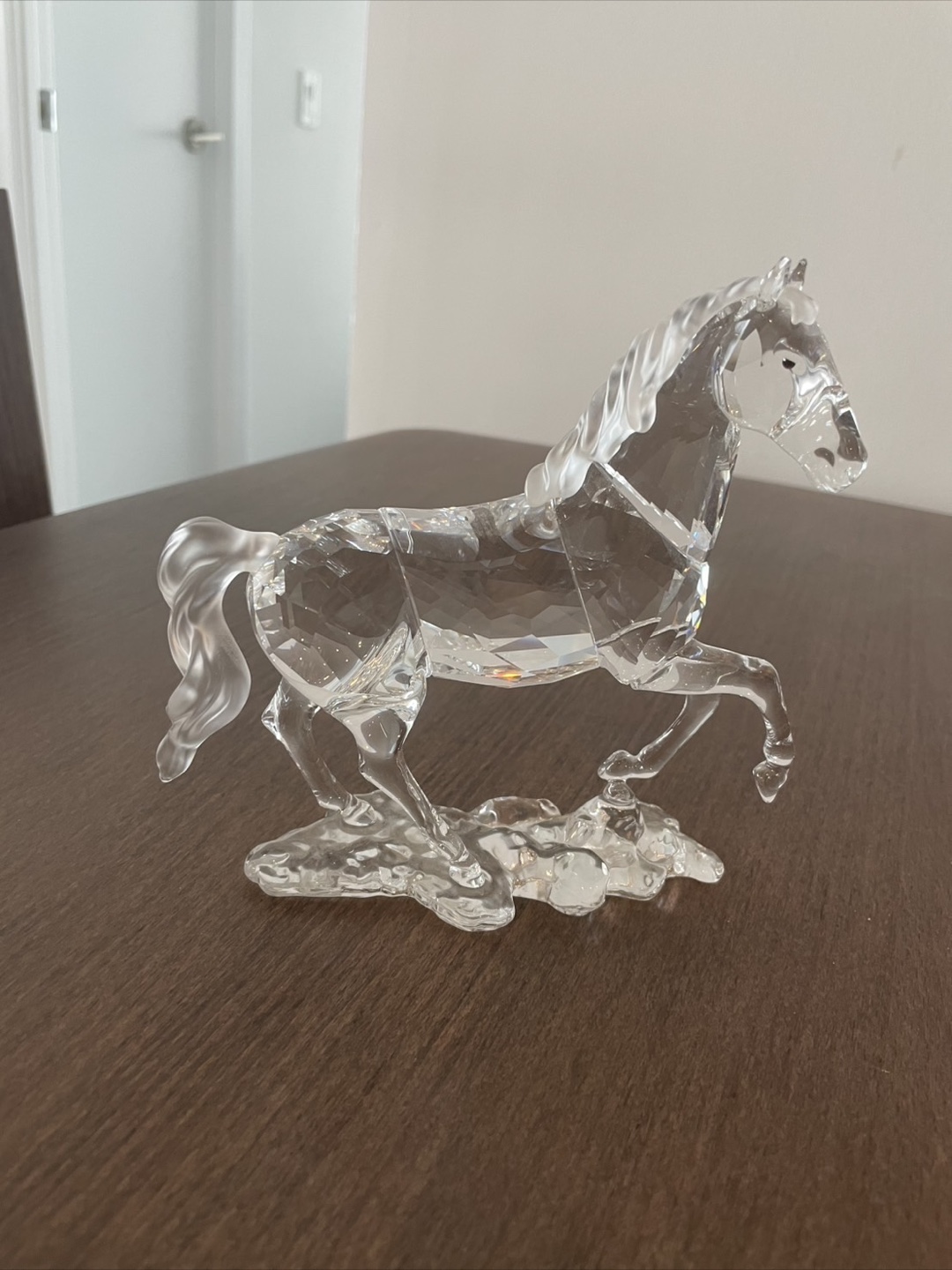 This is a beautiful Swarovski crystal horse figurine. It would make a lovely addition to any collection or a thoughtful gift for a horse lover. The figurine is in excellent condition and sparkles beautifully in the light