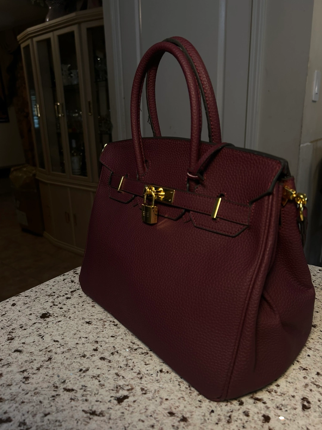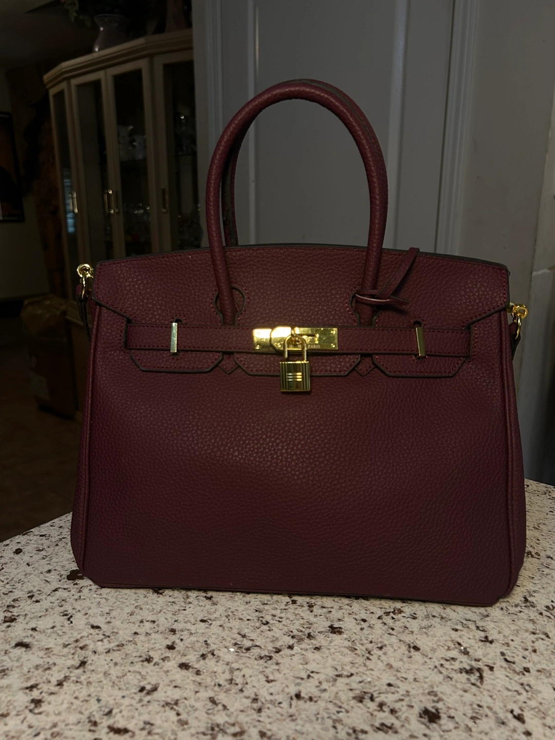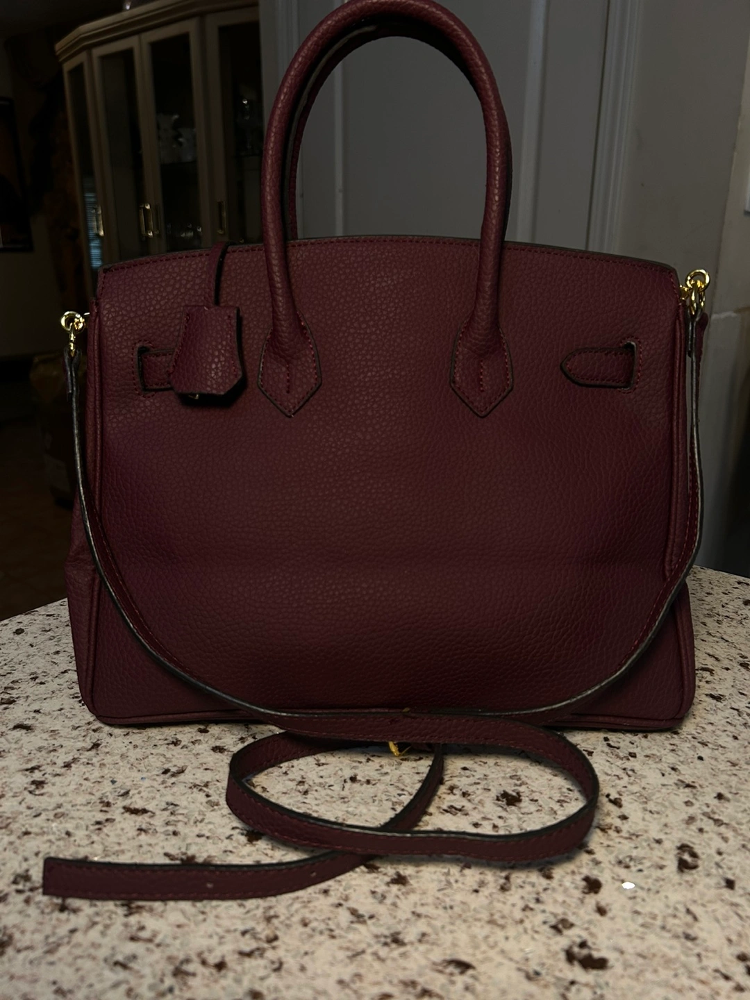 Selling a burgundy handbag. It is in great condition and comes with a shoulder strap