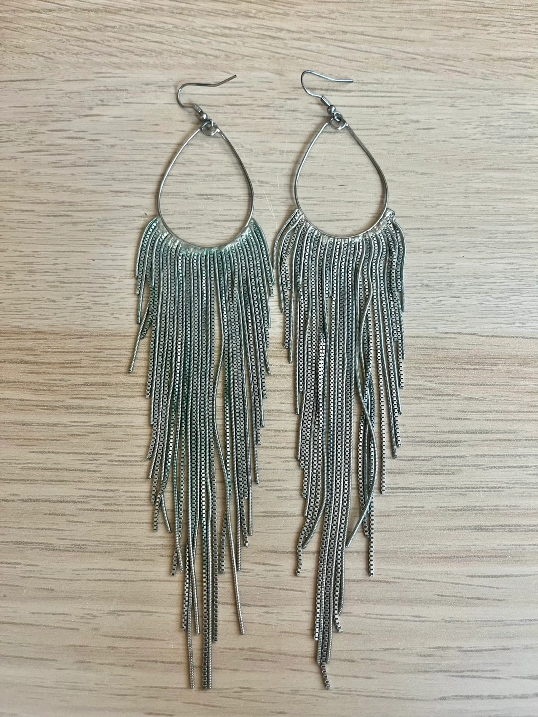 These are a pair of Vintage silver dangle earrings. They come with their original box. These earrings are perfect for adding a touch of elegance to any outfit!