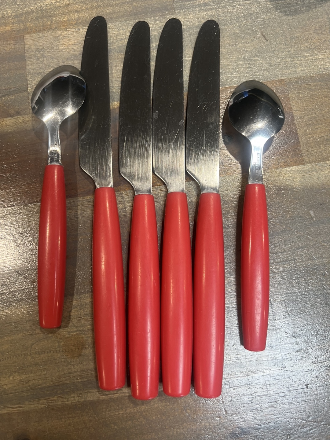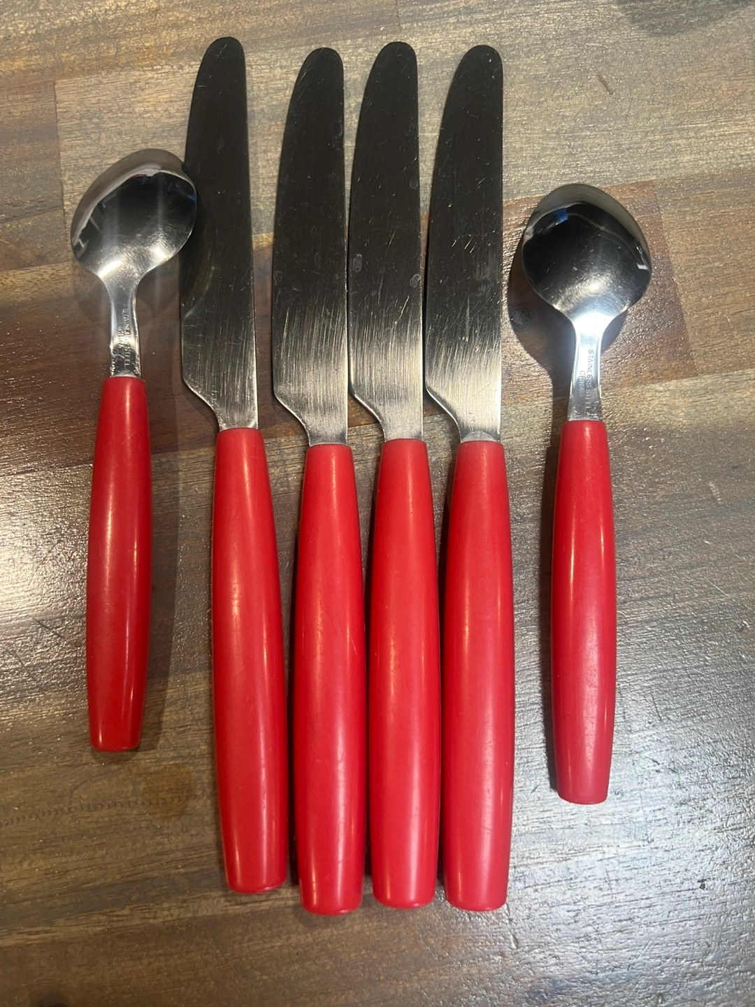 Vintage Stainless Steel Cutlery Set - Red Handles