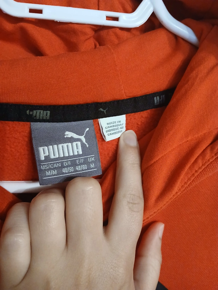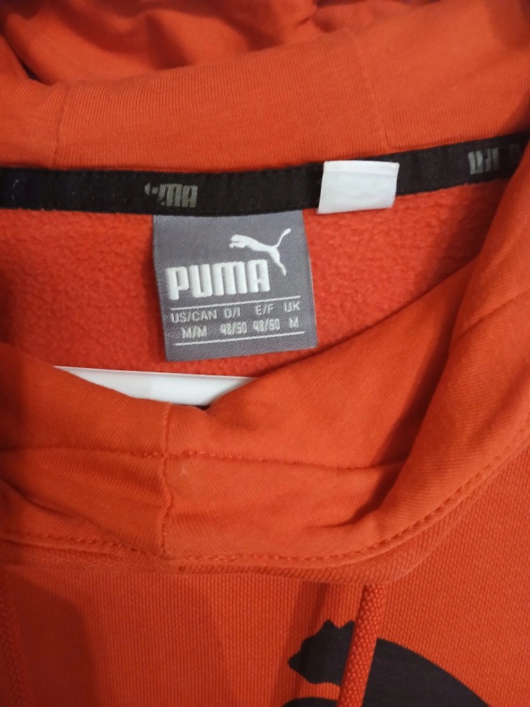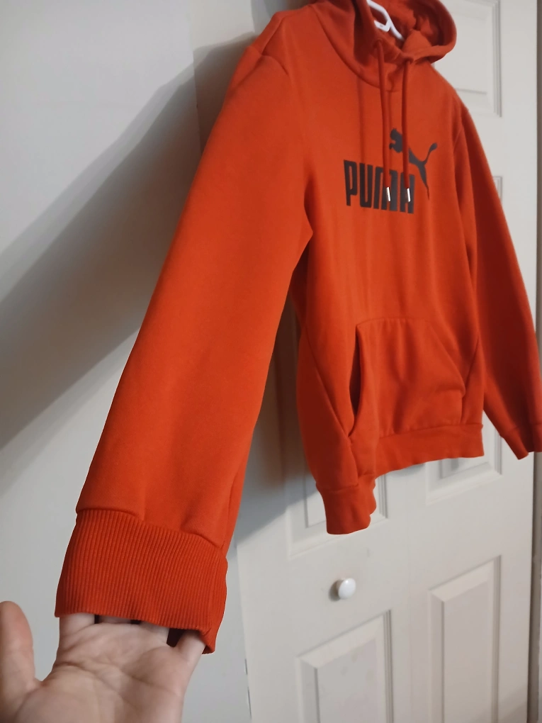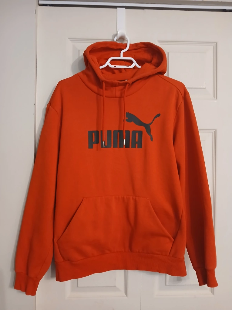 Type: Vibrant red hoodie from Puma with Puma logo and large pocket in front. Perfect for casual outings. Technically for "men" but I find it unisex.