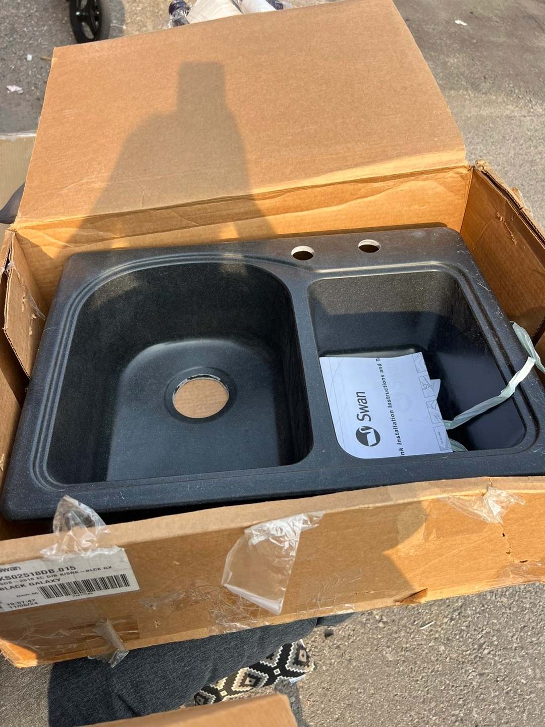 Selling a Swan Black Galaxy granite composite kitchen sink! It's in great condition and comes with the original box and installation instructions